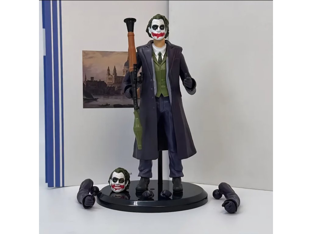 "Why so serious?" Ikonická podoba Jokera, jak ji nezapomenutelně ztvárnil Heath Ledger ve filmu Temný rytíř. Tato 19 cm vysoká, plně kloubová akční figurka se pyšní detailním zpracováním a širokou škálou příslušenství, včetně vyměnitelné hlavy, několika párů rukou a jeho filmových zbraní. Součástí balení je i stojan pro vystavení v dynamických pózách. Nezbytný kousek do sbírky každého fanouška.