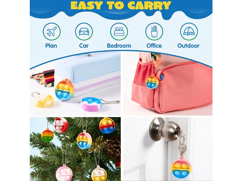 Hledáte perfektní malou hračku, která zabaví a zároveň uklidní? Náš Antistresový Mini Pop It Přívěsek je ideální volbou! Tato miniaturní verze populární senzorické hračky přináší uspokojivé "praskání" bublin, které pomáhá uvolnit stres a zlepšit soustředění, ať jste kdekoli.