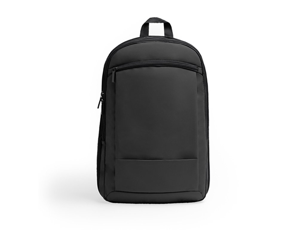 Batoh z PU kůže s jednou hlavní přihrádkou a vnitřní polstrovanou kapsou na 17“ notebook. Obsahuje dvě vnější kapsy se zapínáním na zip, jednu na přední straně a druhou na boku. Rozšiřitelná boční kapsa je vyrobena z recyklovaného polyesteru RPET. Má popruh k připevnění na vozík, který poskytuje pohodlí při cestování. S objemem 15 litrů.