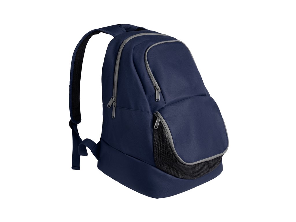 Sportovní batoh ergonomického designu, snadno přizpůsobitelný. Batoh má dvojité zesílené ramenní popruhy, jedno madlo, prošívaná záda a přední přihrádku na boty. Disponuje jednou hlavní kapsou a menší vnější přední kapsou. Batoh má kontrastní zipy v šedé barvě a detaily v černé barvě.
