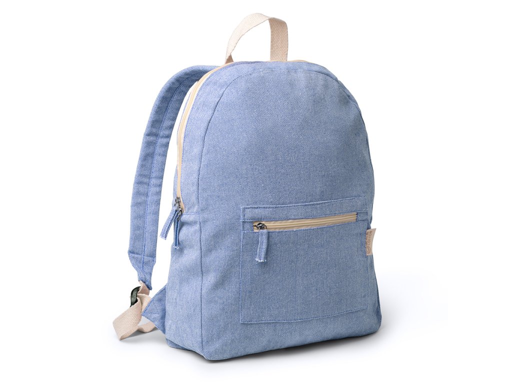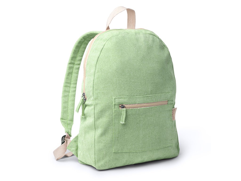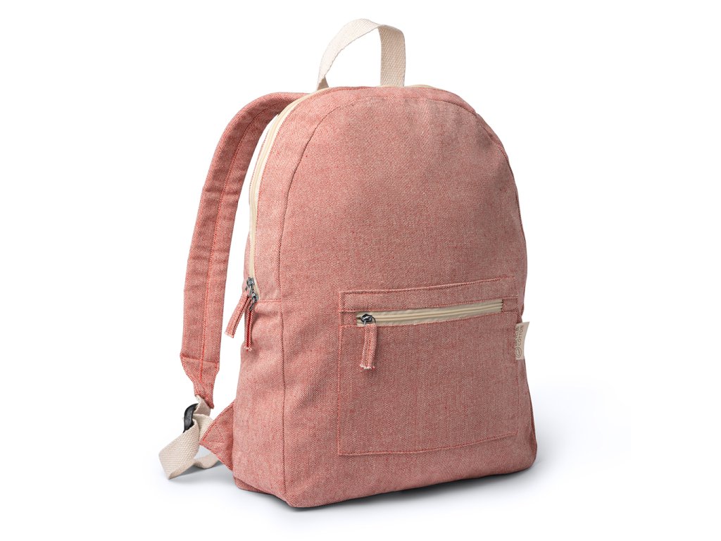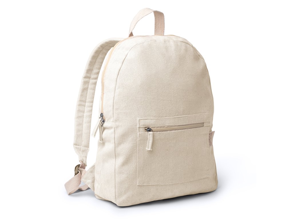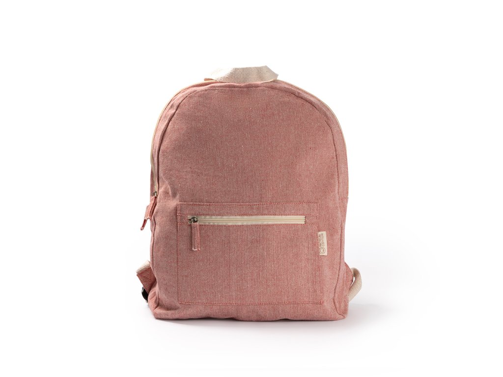 Batoh vyrobený z recyklované bavlny o gramáži 320 g/m² v designu s vřesovou úpravou. Přední kapsa a polstrované ramenní popruhy.