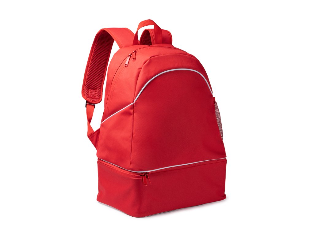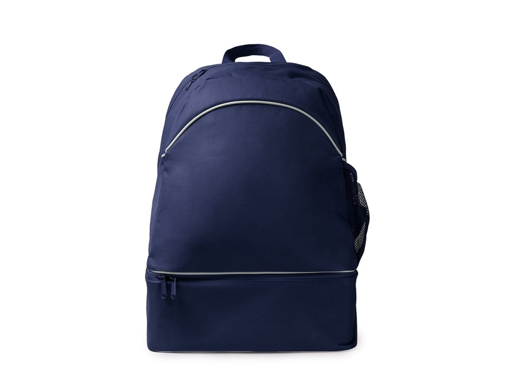 Sportovní batoh s pevnou přihrádkou na boty. Hlavní přihrádka na zip s dvojitým stahováním. Vnitřní kapsa z podšité látky se zapínáním na zip. Polstrovaná záda a ucha. Plastové pouzdro na kartičku s údaji.