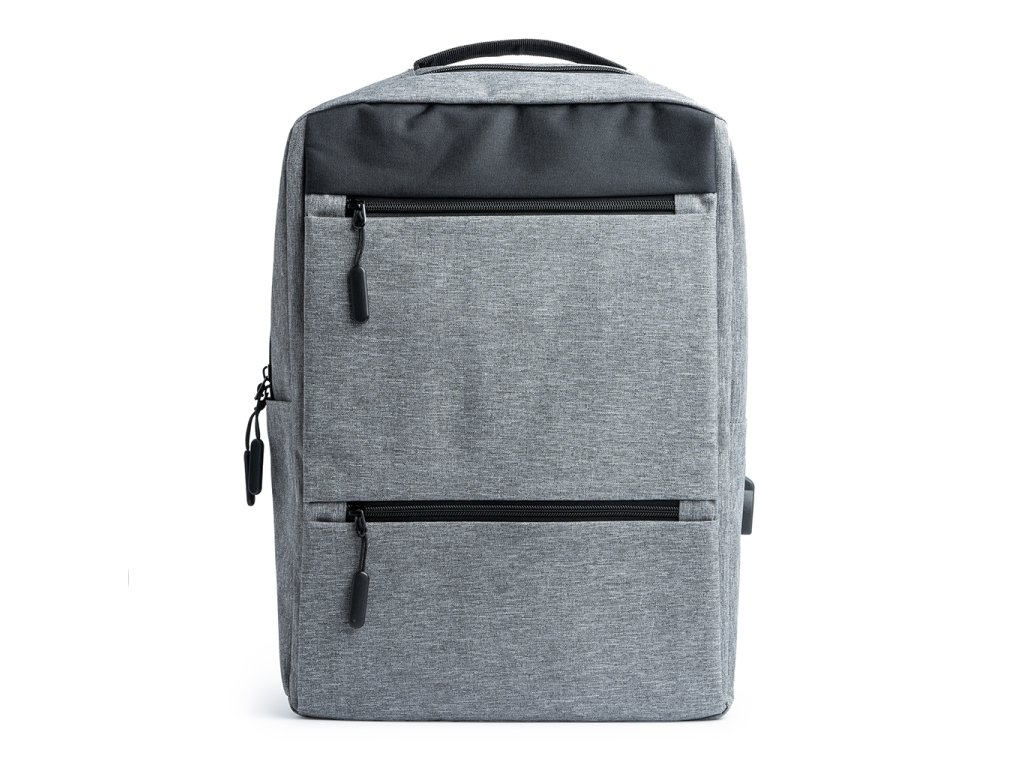Batoh vyrobený z polyesteru 300D. Inovativní design v provedení OXFORD. Hlavní polstrovaná kapsa, ideální pro notebook, a dvě přední kapsy s elegantními stahovacími pásky. Vestavěný USB port pro připojení powerbanky (není součástí balení). Polstrovaná záda a ramenní popruhy.