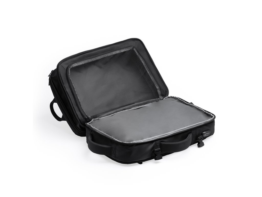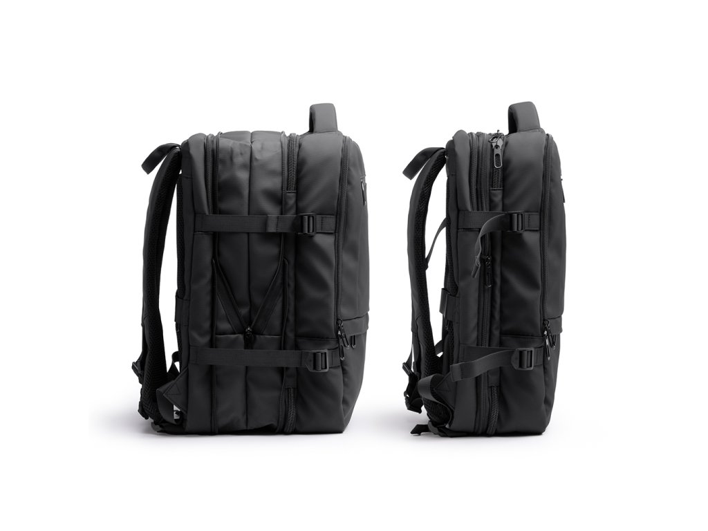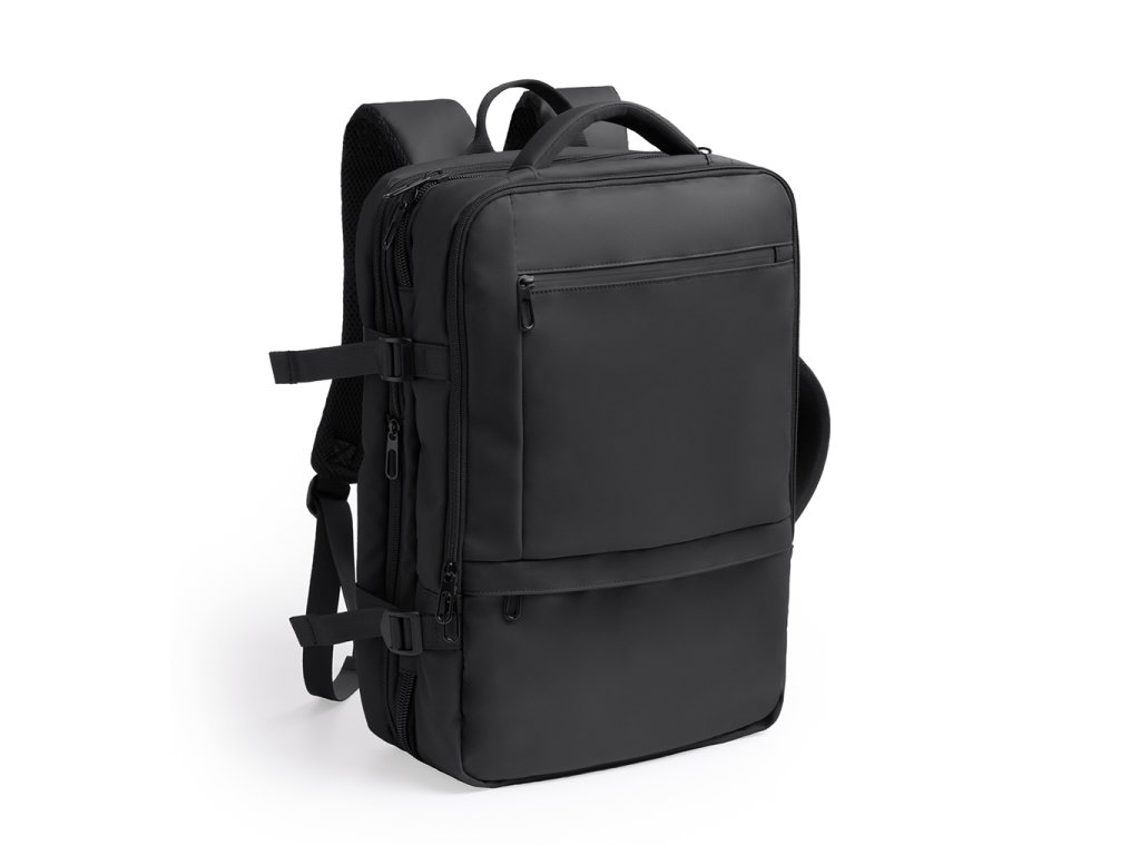Cestovní batoh z natahovací PU kůže nabízí velkou kapacitu a pohodlí díky polstrovaným zádům a rukojetím. Obsahuje vnější přední kapsu se zapínáním na zip. Hlavní přihrádka s polstrovanou vnitřní kapsou na 17“ notebook. Vybaven kapsami proti krádeži na levé rukojeti a zádech a popruhem na kolečkách. Ideální na dlouhé cesty s kapacitou 40 l, kombinuje styl, funkčnost a bezpečnost.