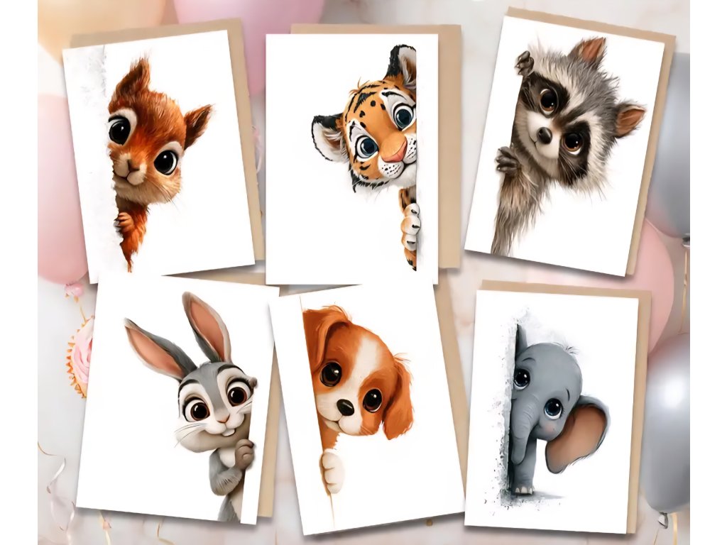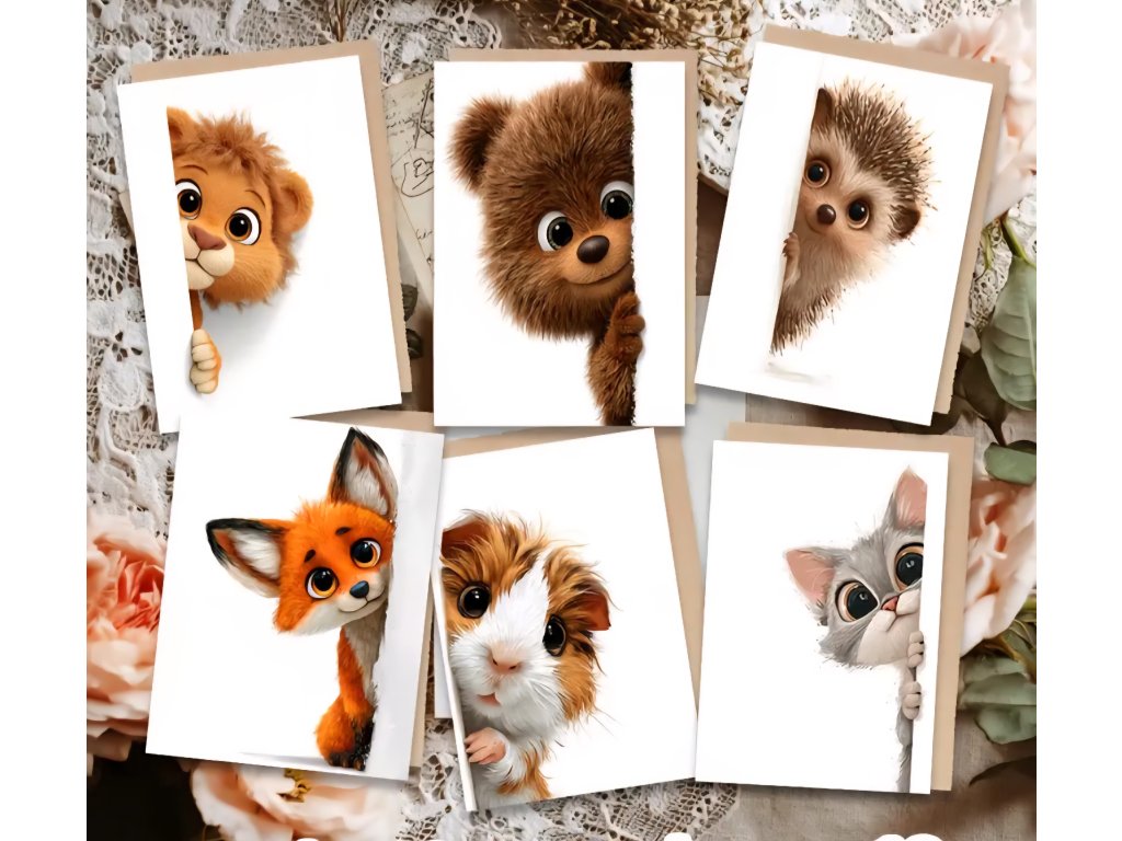 Chcete někomu poslat úsměv, milý vzkaz nebo mu jen tak udělat radost? S těmito naprosto rozkošnými přáníčky, ze kterých na vás vykukují roztomilá zvířátka s velkýma očima, to bude hračka. Díky svému univerzálnímu a milému designu jsou ideální pro každou příležitost a zaručeně potěší jak děti, tak dospělé milovníky zvířat.