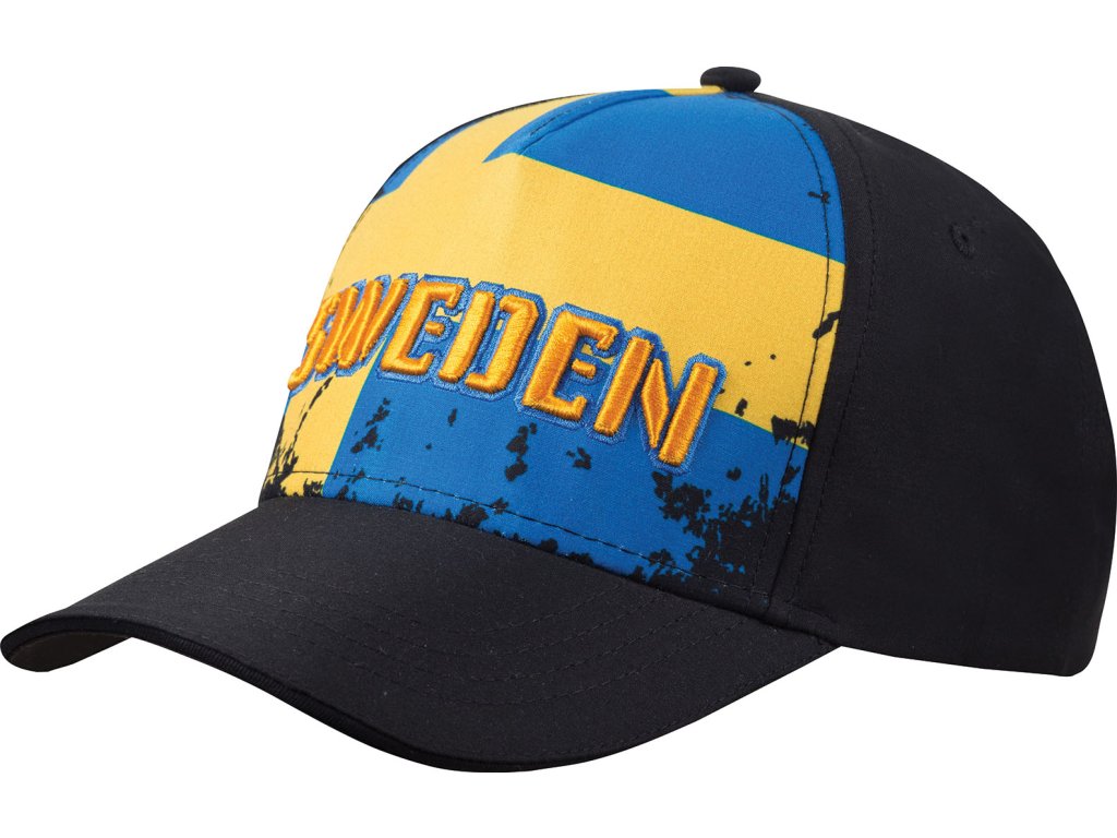 Pětipanelová čepice s vlajkou. Výšivka SWEDEN ve 3D provedení. Čelo čepice je vyztužené. Zapínaní na suchý zip...