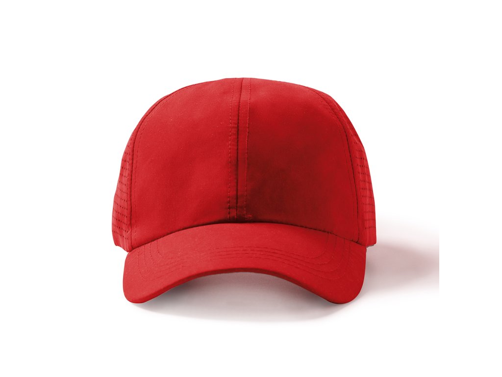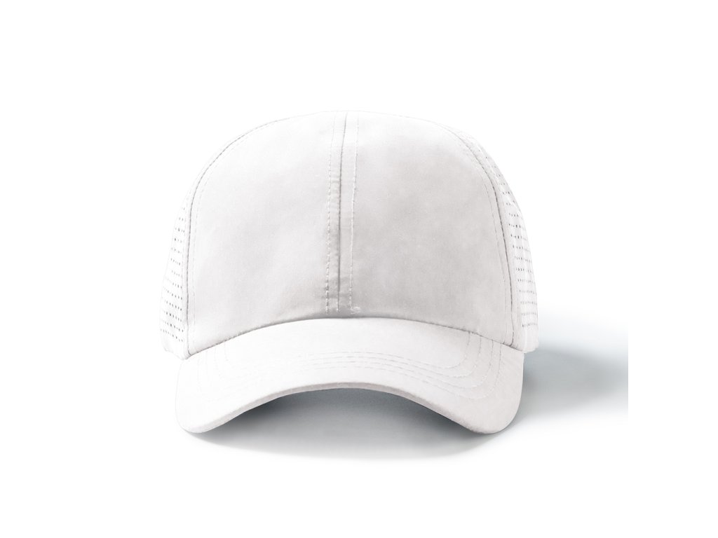 Prodyšná sportovní čepice se 6 panely ze 100% mikrovlákna. Nastavitelné zapínání na přezku a větrací očka. Odnímatelný štítek.