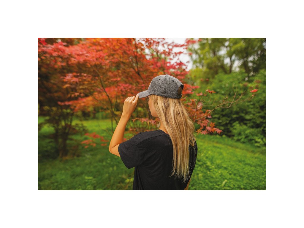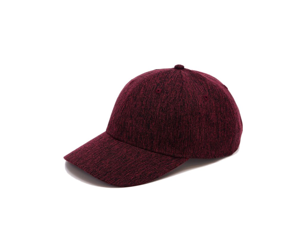 Šestipanelová čepice s melírovým efektem. Má vyztužené čelo, kovové zapínání, obšité větrací otvory a bavlněný potící pásek.