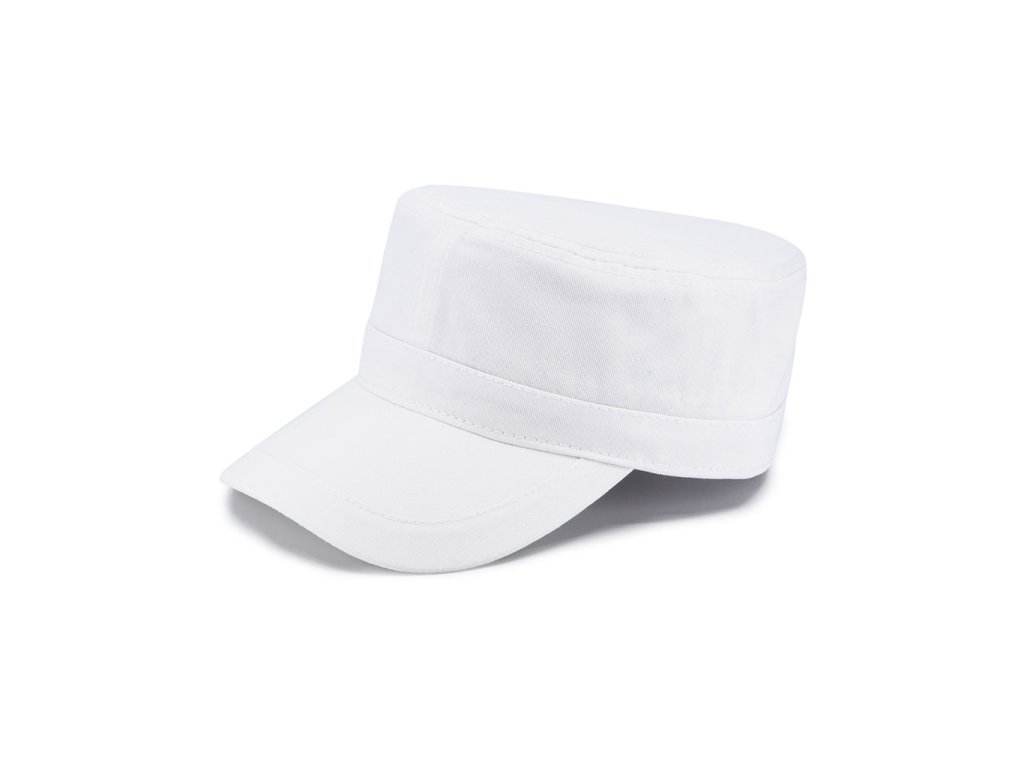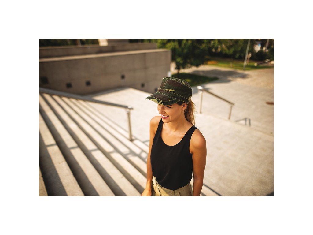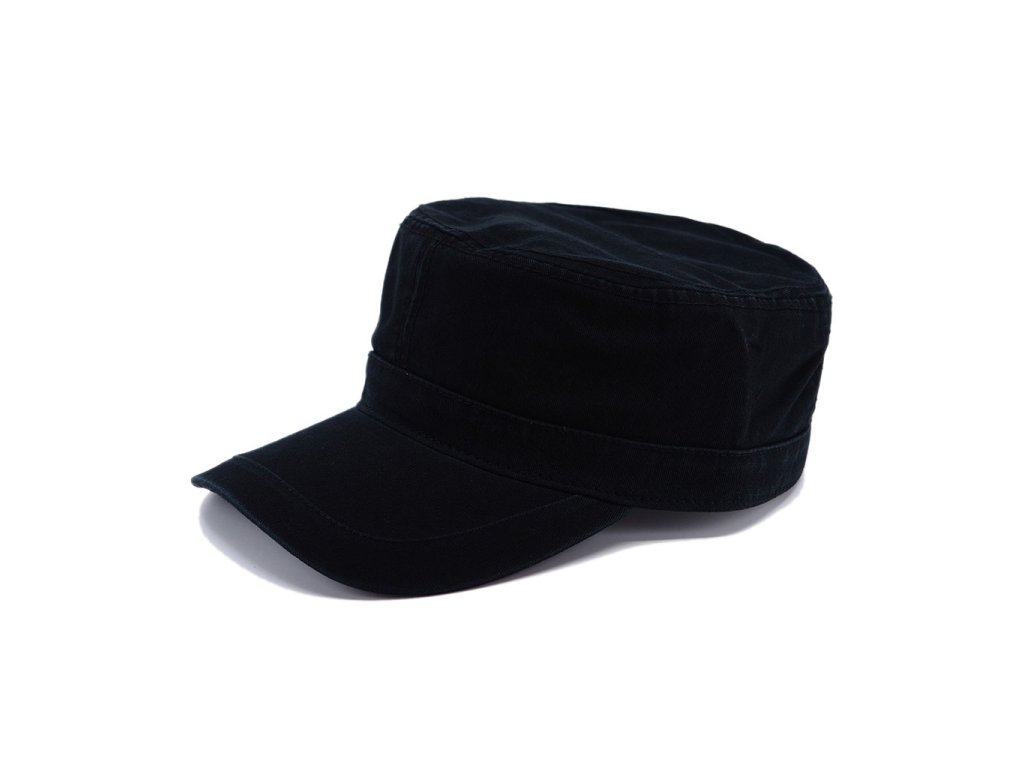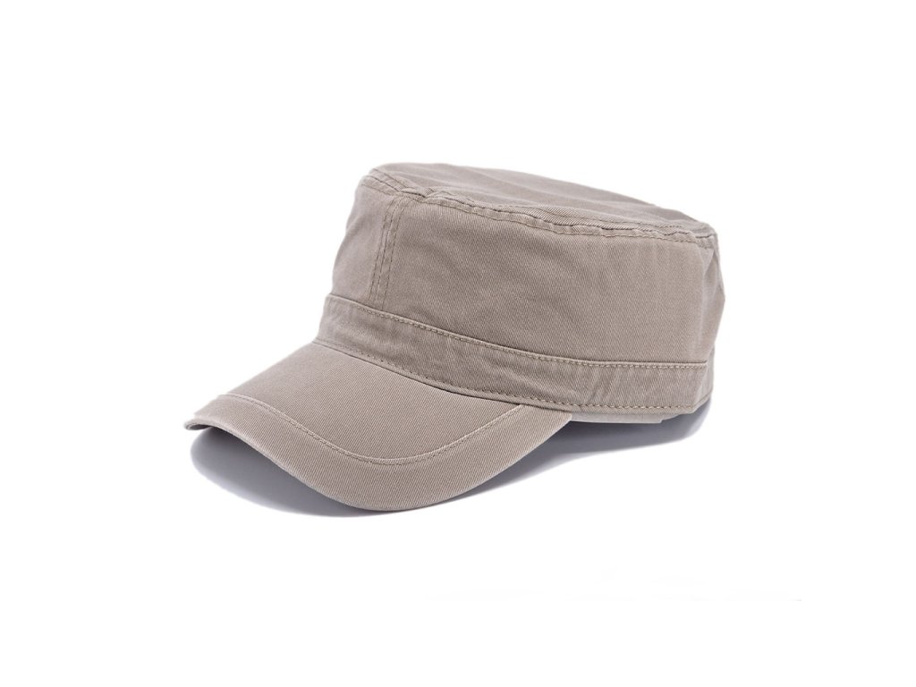 Čepice vojenského stylu ze 100% seprané bavlny se zapínáním na suchý zip a bavlněným potícím páskem.