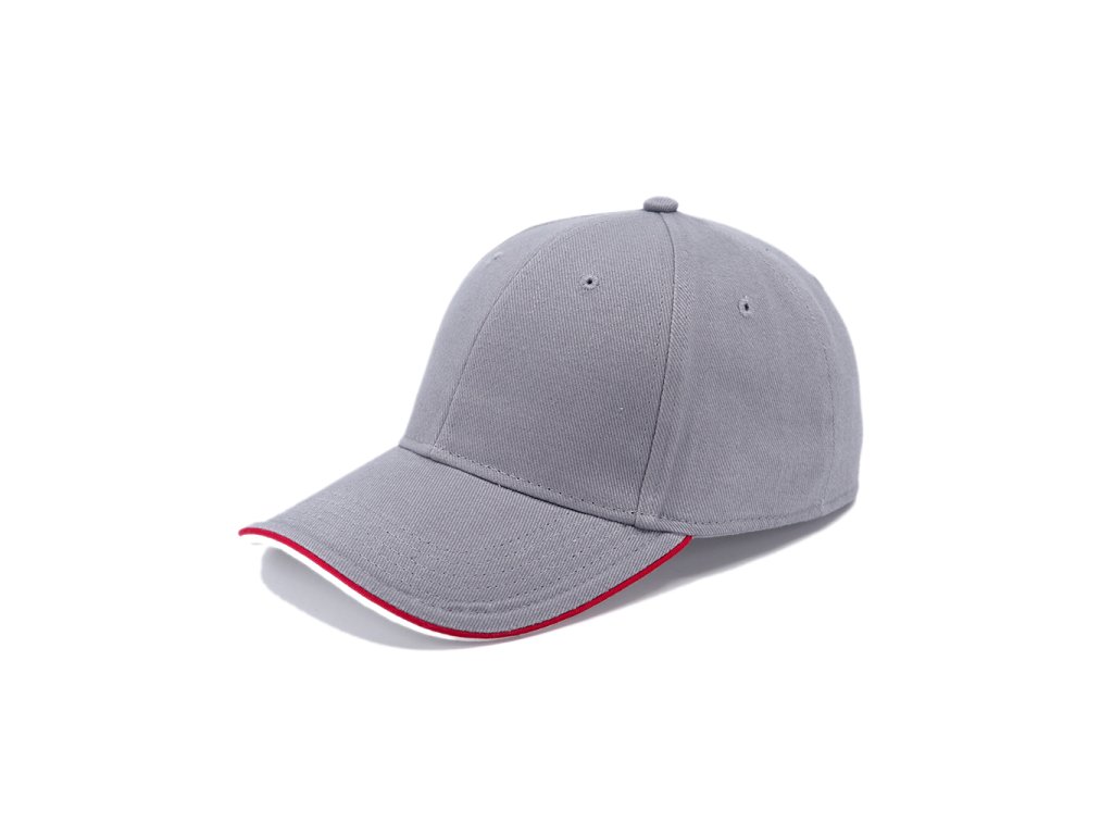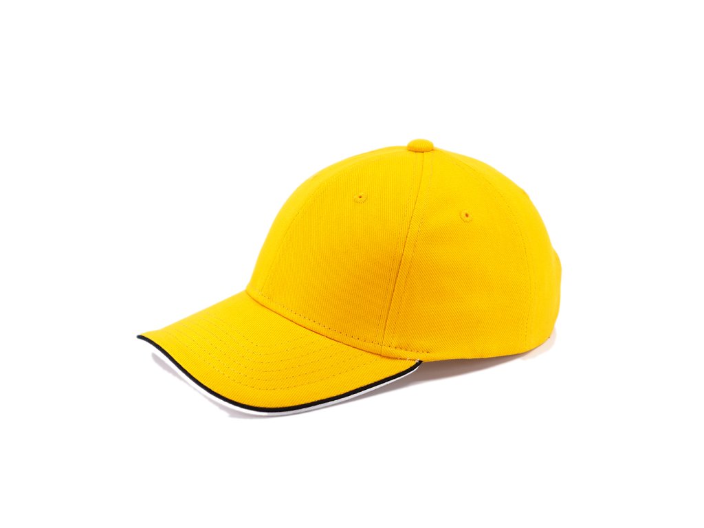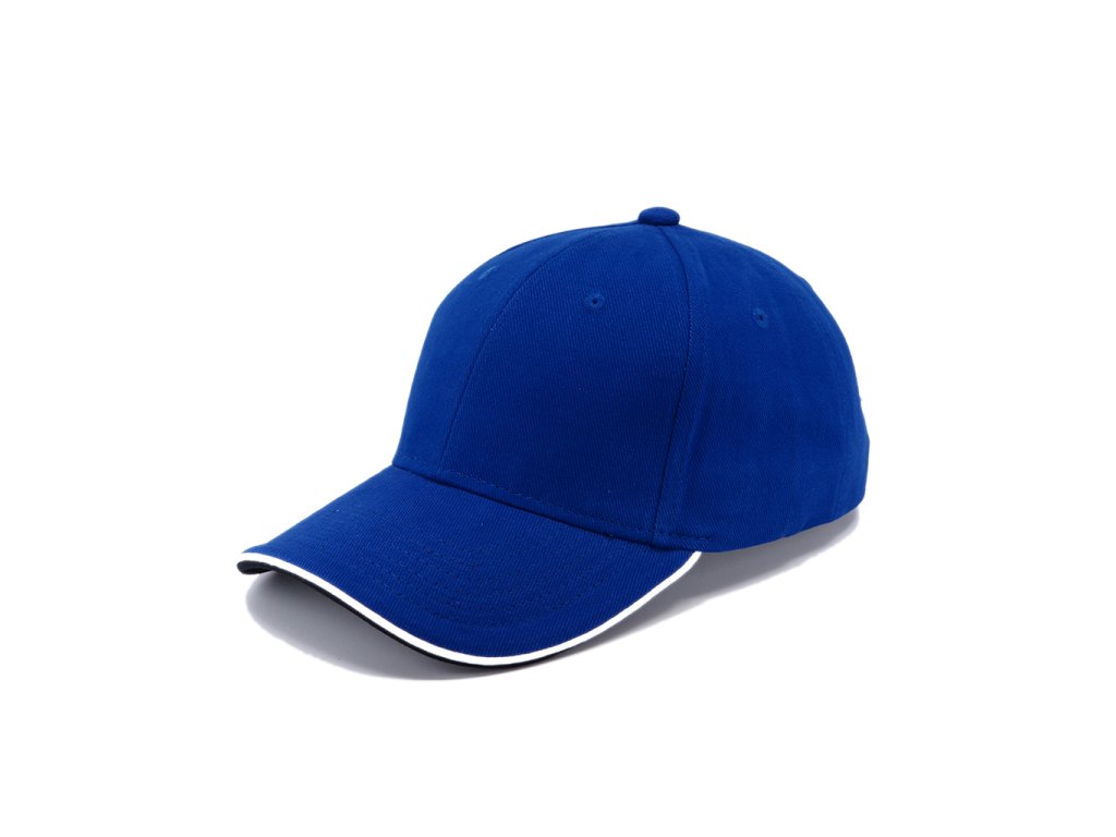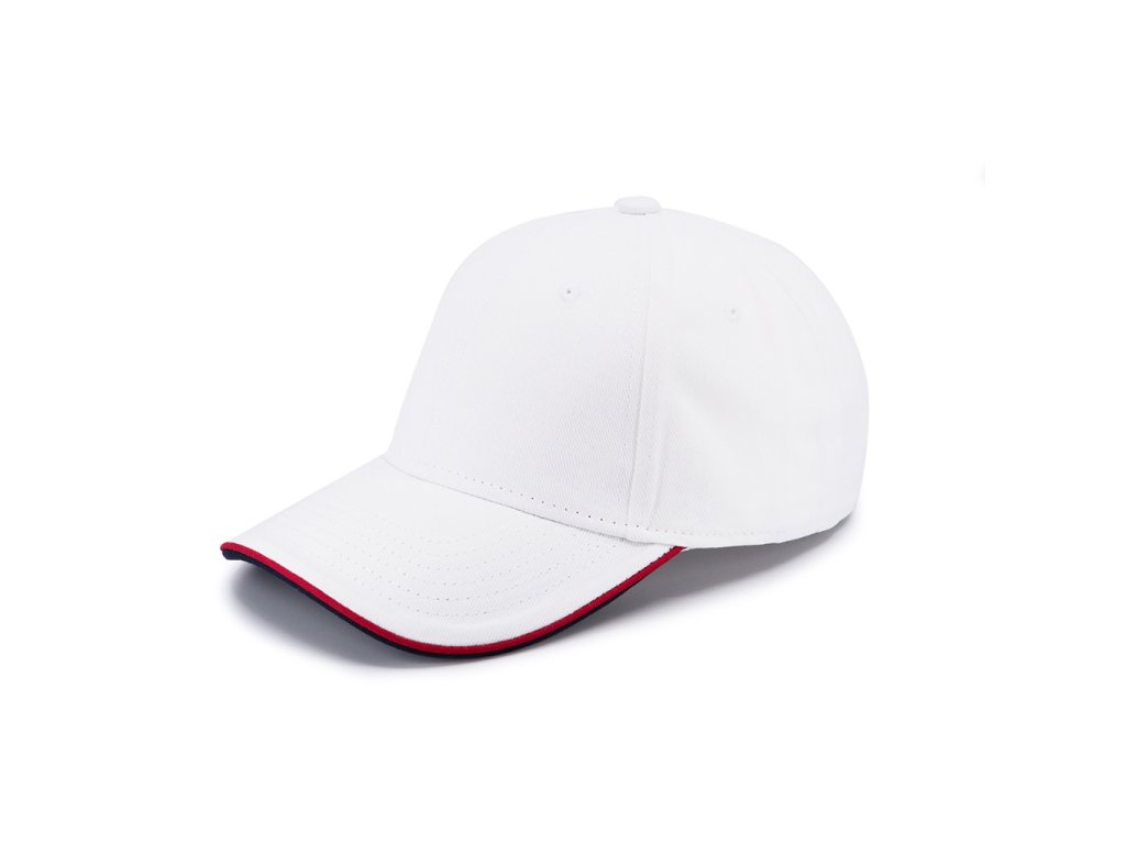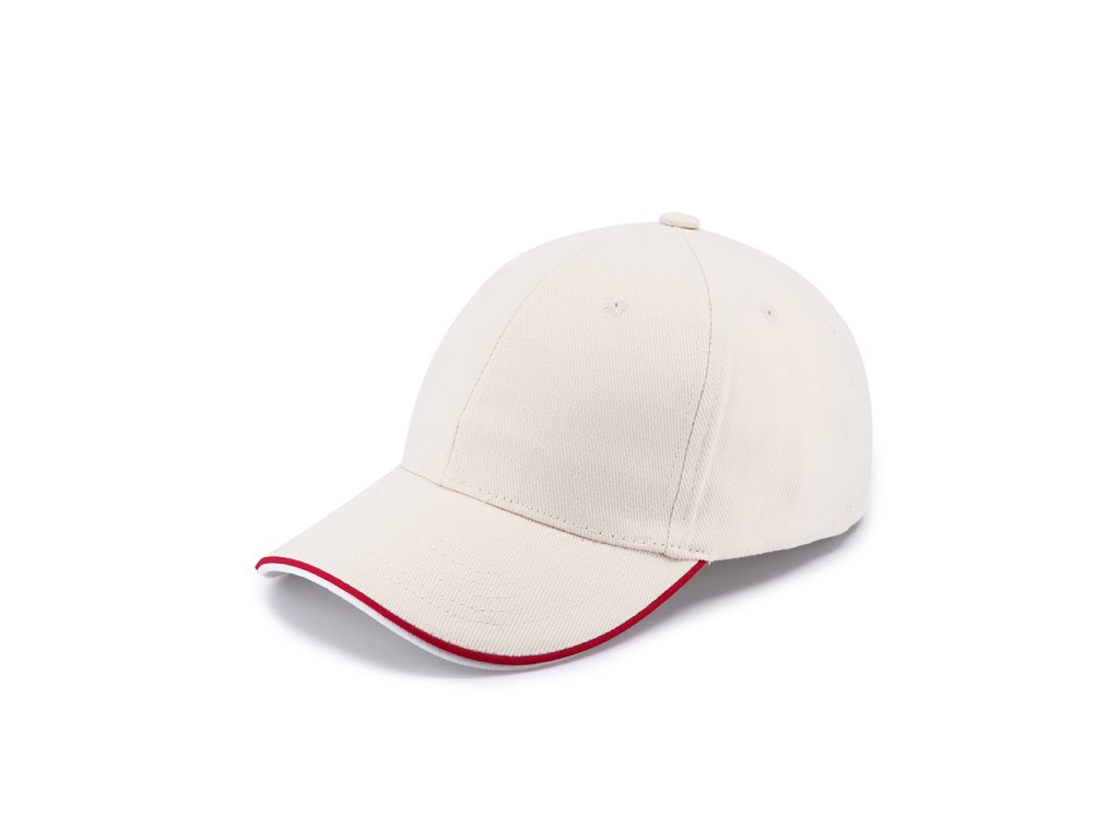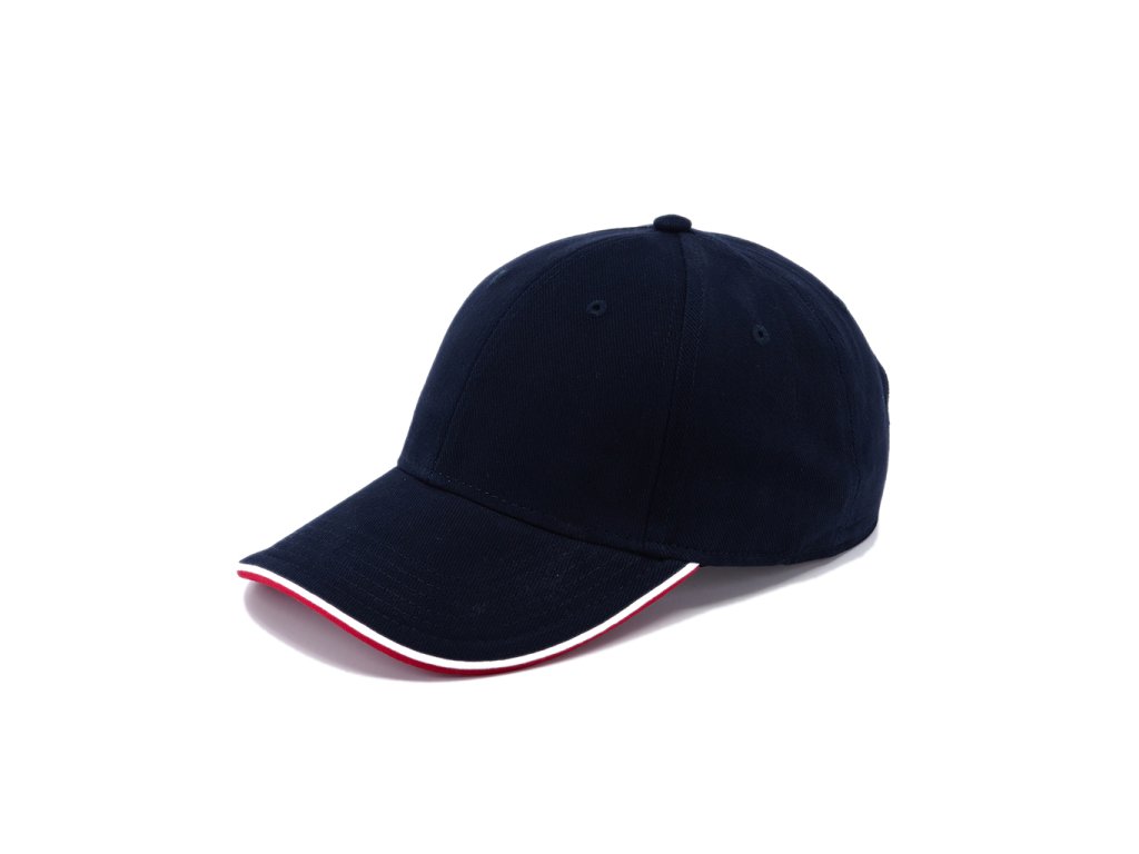 Šestipanelová čepice s kontrastními doplňky a zapínáním na mosaznou sponu a očko. Má vyztužené čelo, obšité odvětrávací otvory, kontrastní linku na kšiltu a odlišnou barvou spodní části kšiltu. Bavlněný potící pásek a vnitřní lem.