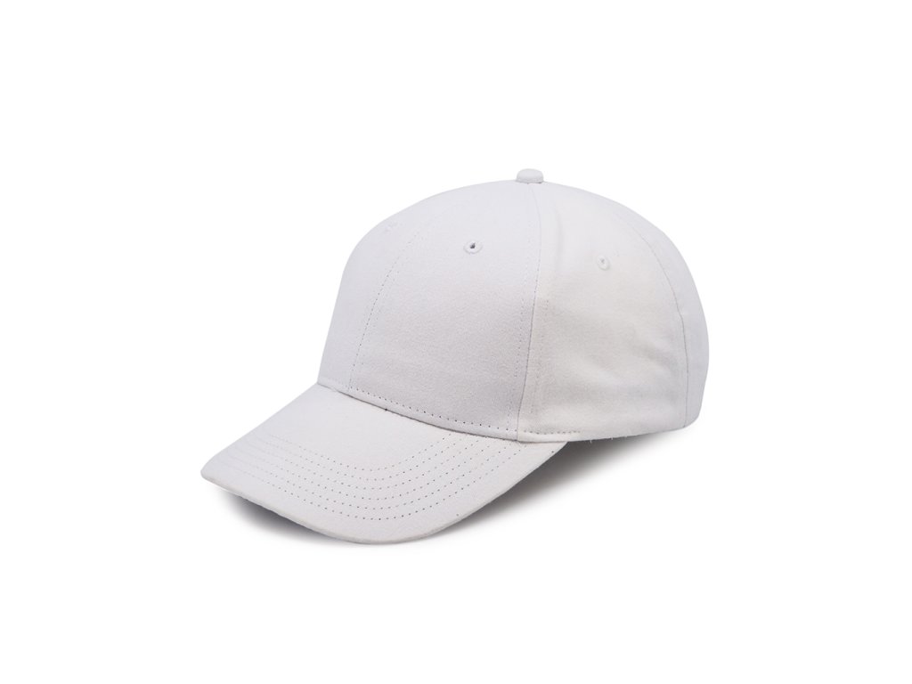 Šesti panelová čepice se stříbrnou přezkou a vyztuženým čelem. Čepice má obšité větrací otvory.