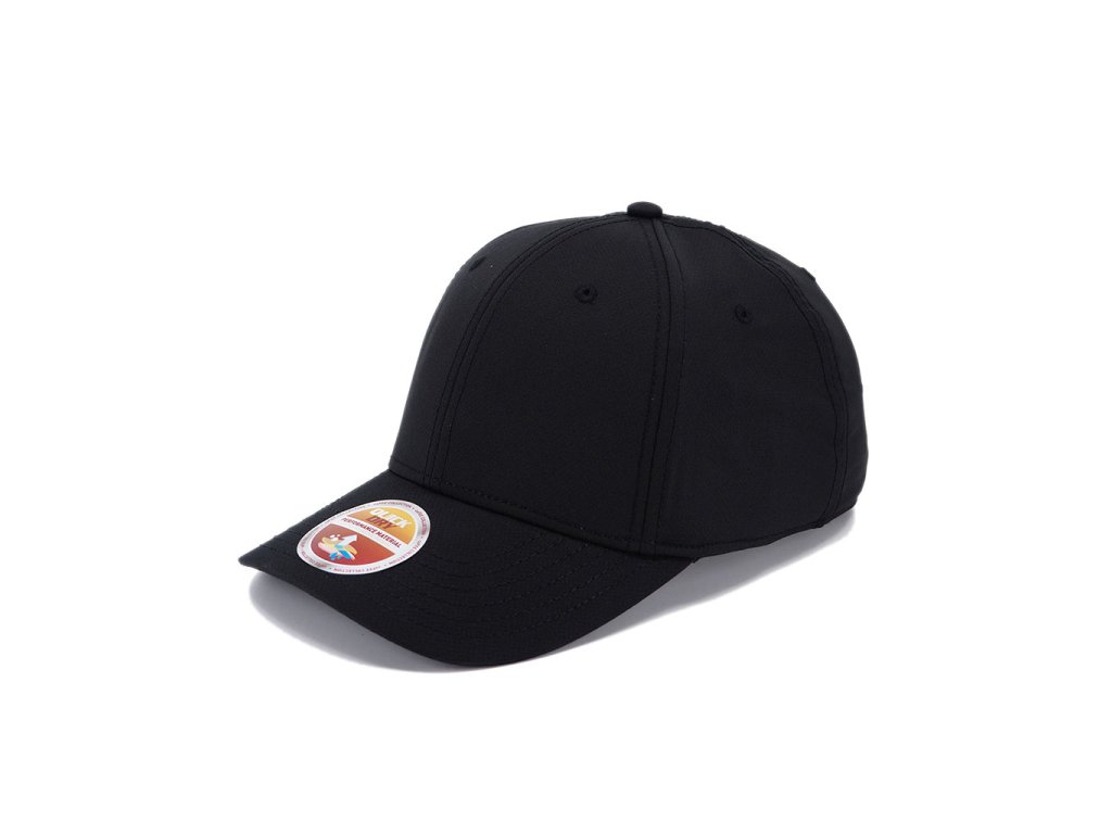 Šestipanelová čepice z funkčního materiálu, vyztužené čelo, obšité větrací otvory a zapínání na suchý zip. Rychleschnoucí a antibakteriální potící pásek.