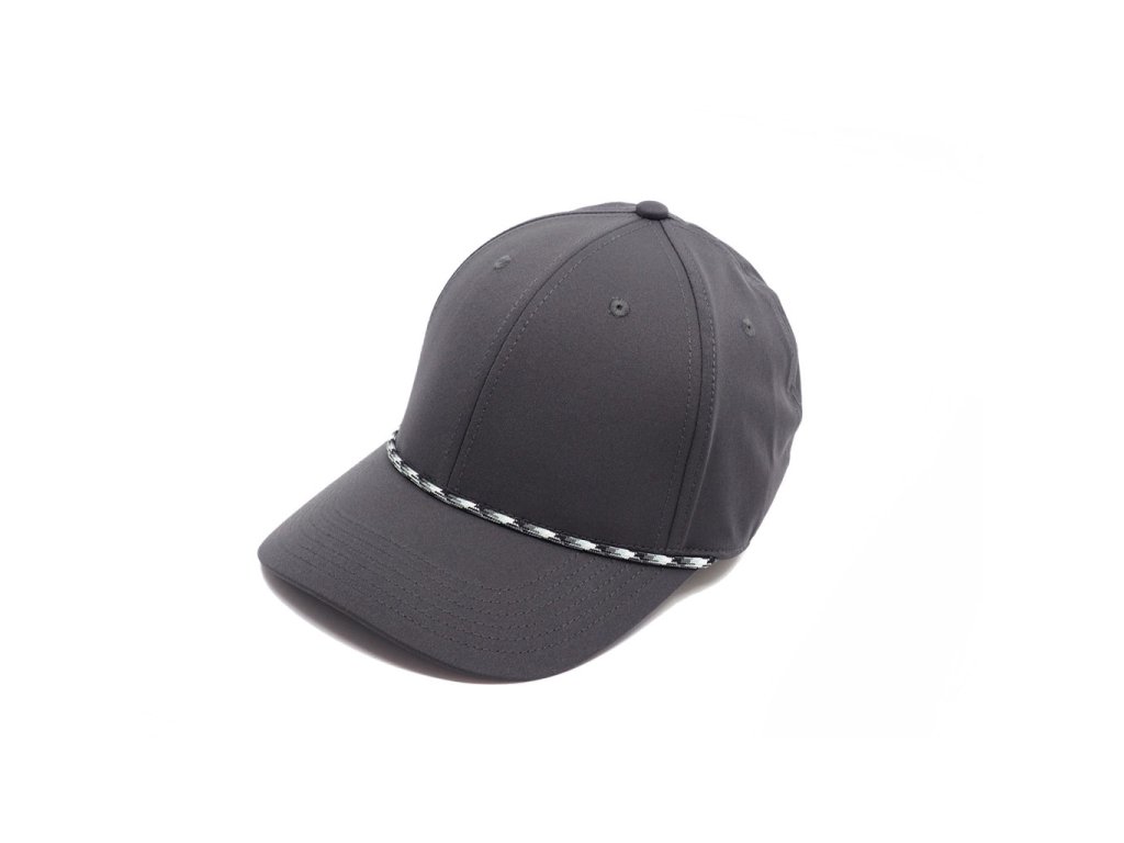 Moderní stylová kšiltovka vyrobená ze 100% elastického polyesteru s ozdobným provázkem na kšiltu. Velmi měkký a pohodlný materiál odvádějící vlhkost. Kšiltovka má 6 panelů, nízký profil, zakřivený kšilt a zapínání na suchý zip, horní část je z ozdobné gumy.