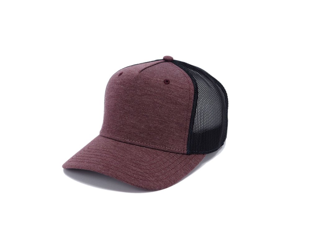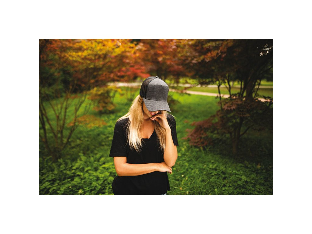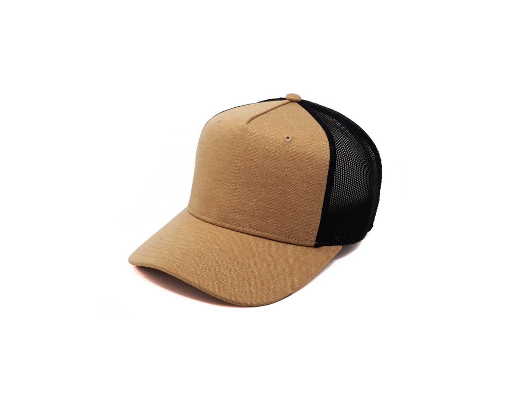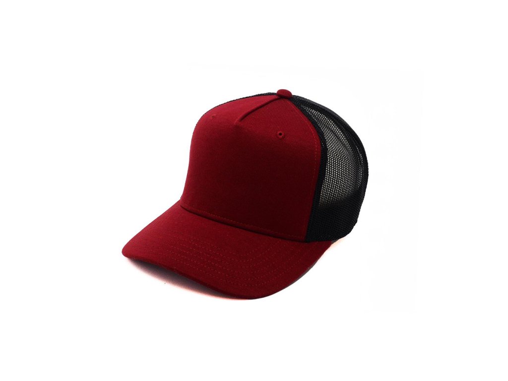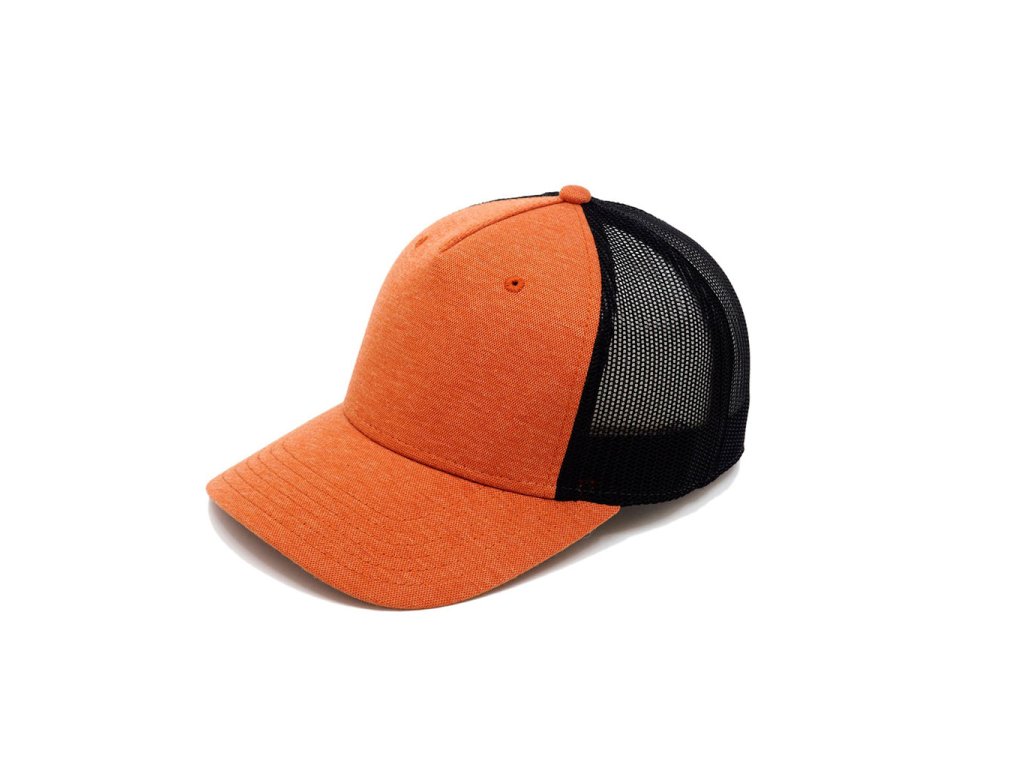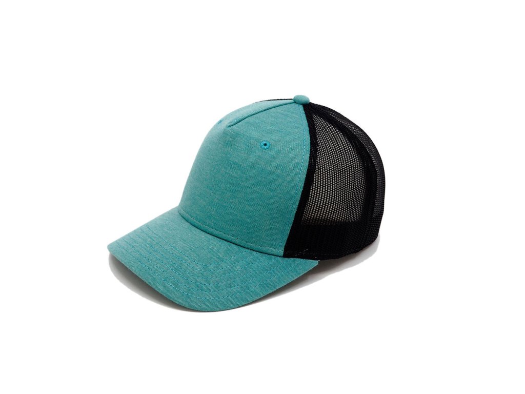 Pětipanelová čepice s bavlněným potícím pásekem a plastovým zapínáním. Plný přední panel s obšitými větracími otvory, ostatní panely mají síťku pro lepší odvětrávání.