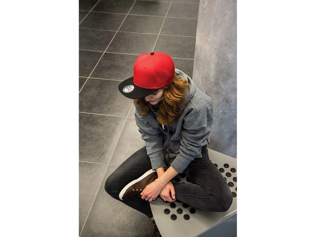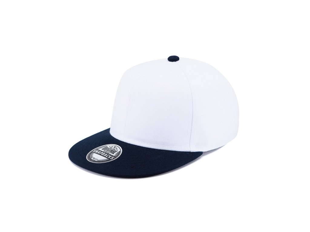 Šestipanelová čepice s plochým kšiltem, spodní strana kšiltu je ve stejné barvě čepice a plastovým zapínáním. Čepice má vyztužené čelo, obšité větrací otvory a bavlněný potící pásek.
