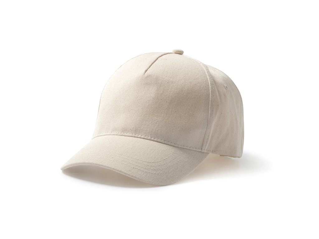 Pětipanelová čepice ze 100% organické bavlny. Nastavitelné zapínání na suchý zip a větrací očka. Odnímatelný štítek.