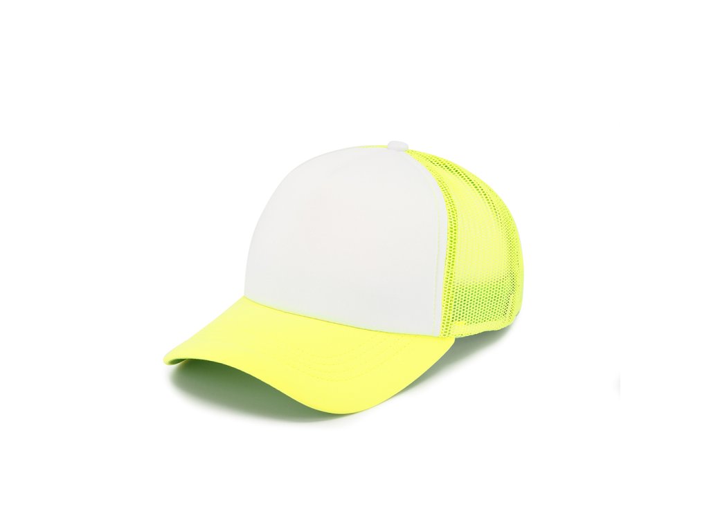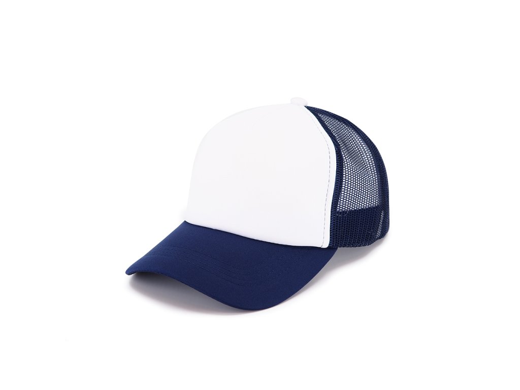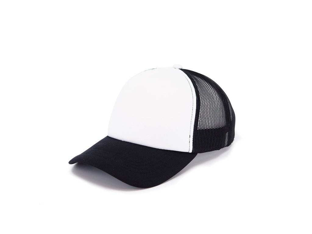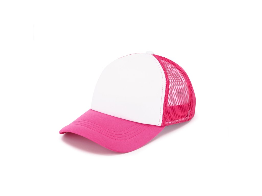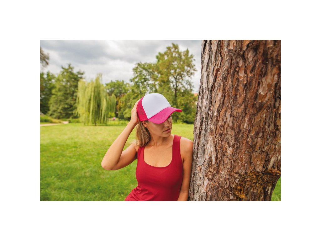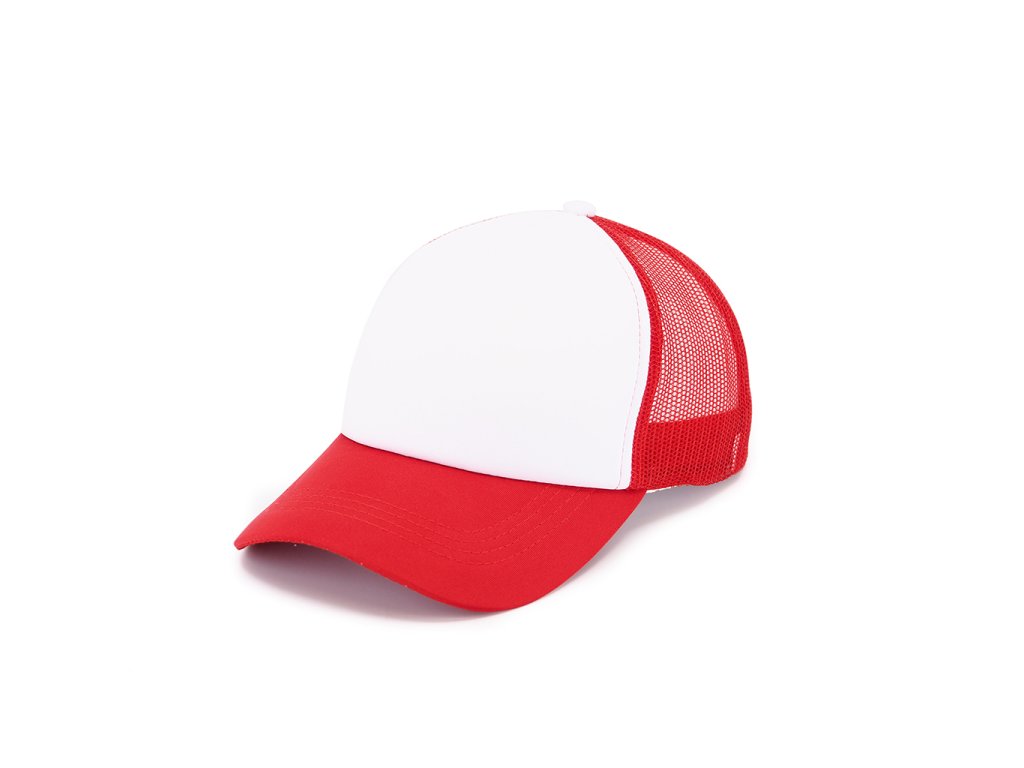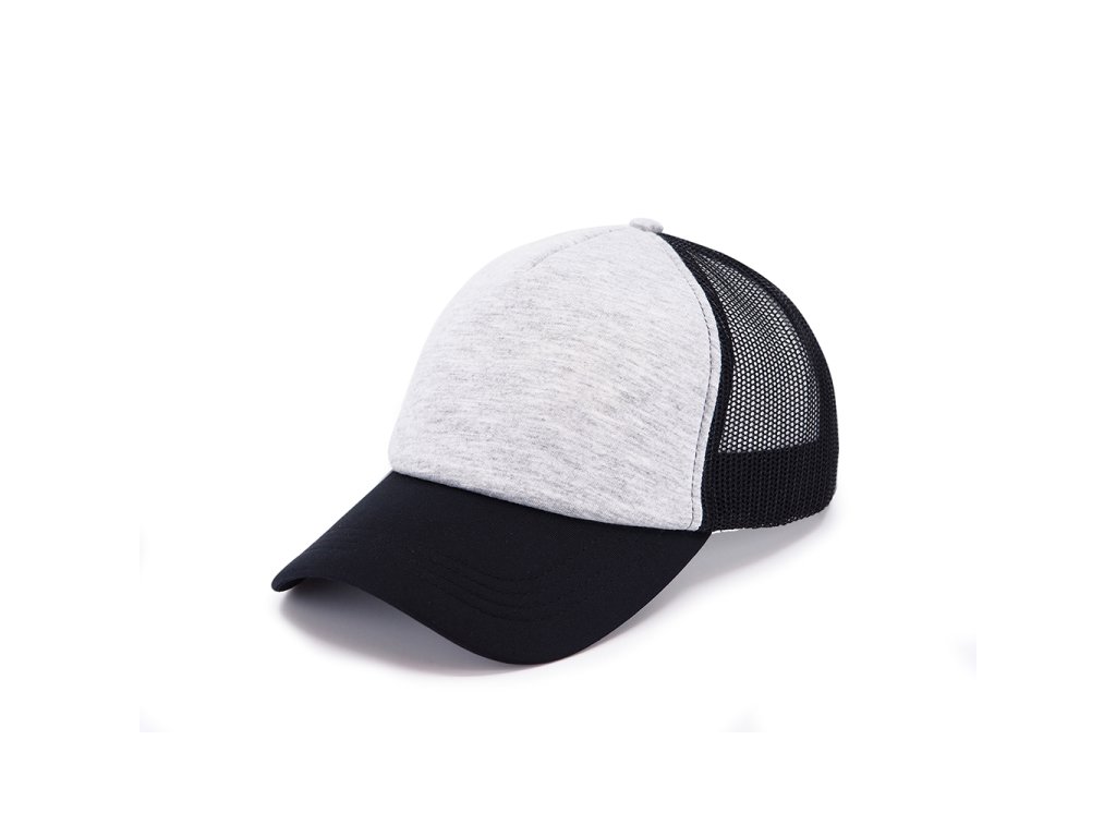 Čepice s vyztuženým čelem, pěti panely, plastovým zapínáním a bavlněným potícím páskem. Plný přední panel z pěnové polyesterové textilie, ostatní panely mají síťku pro lepší odvětrávání.