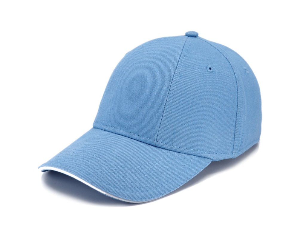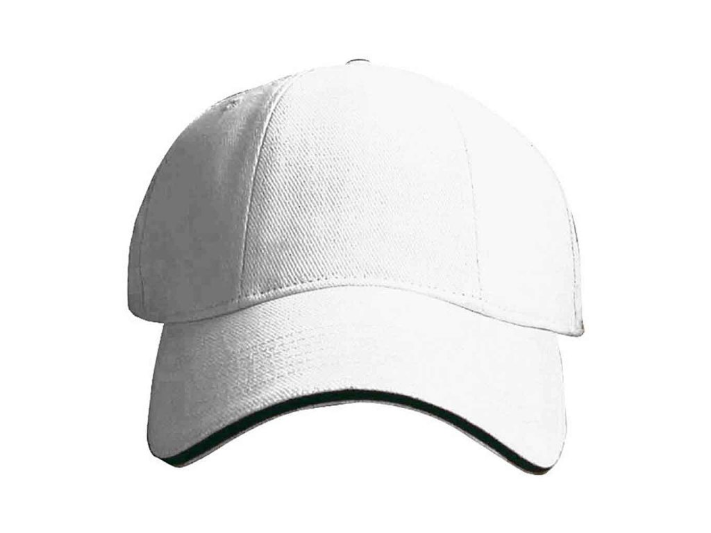 Baseballová šesti panelová čepice s kontrastní linkou vlepenou v kšiltu, díky posunutým švům ideální pro potisk či výšivku, zapínání na kovovou sponu s očkem.