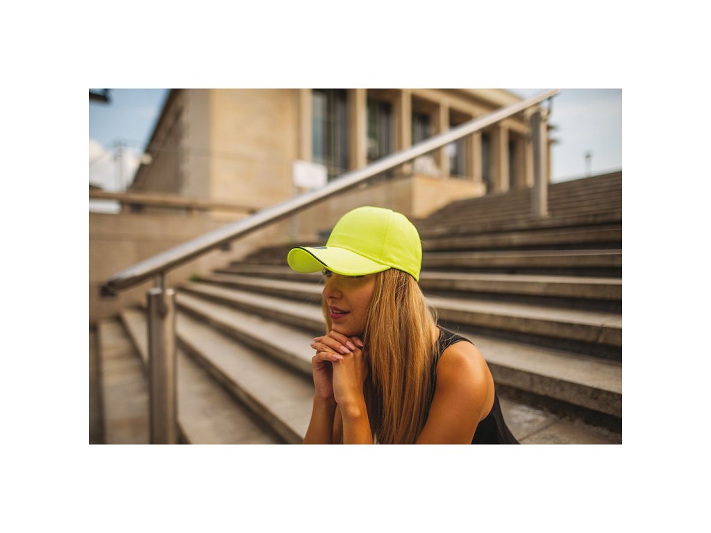 Šestipanelová čepice vyrobena z funkčního materiálu se zapínáním na suchý zip s plastovým očkem. Čepice má vyztužené čelo, obšité větrací otvory a UV filtr (UPF 30+).