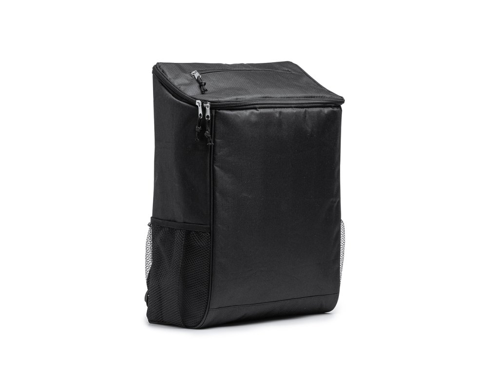 Chladicí batoh z materiálu RPET. Izotermická podšívka v hlavní komoře a kapsa v klopě. Boční síťované kapsy. Objem 18 litrů. Polstrovaná záda a ramenní popruhy.
