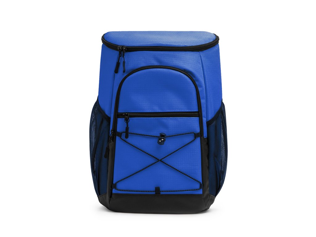 Chladicí batoh z ripstop polyesteru 210D. Izotermická podšívka v hlavní a přední kapse. Přední přihrádka na elastickou bungee šňůru a boční síťované kapsy. Objem 18 litrů. Polstrovaná záda a ramenní popruhy.