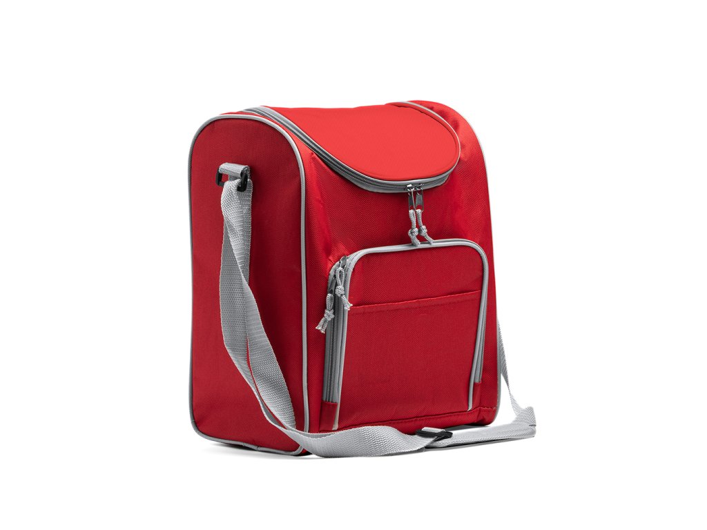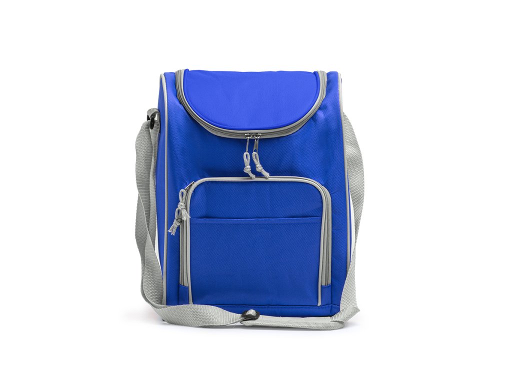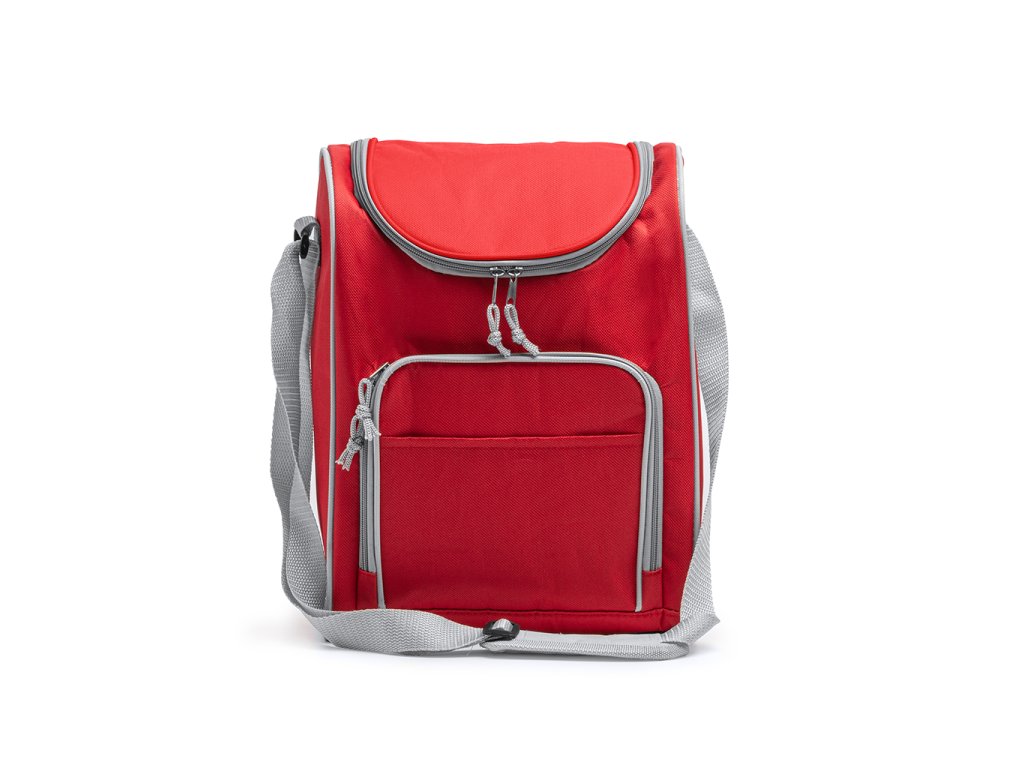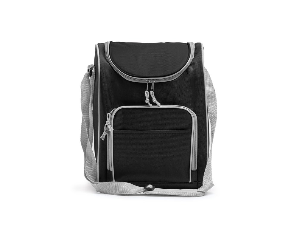Multifunkční chladicí taška z polyesteru 600D. Izotermická hlavní kapsa a praktická přední kapsa. Součástí je nastavitelný popruh pro přenášení.