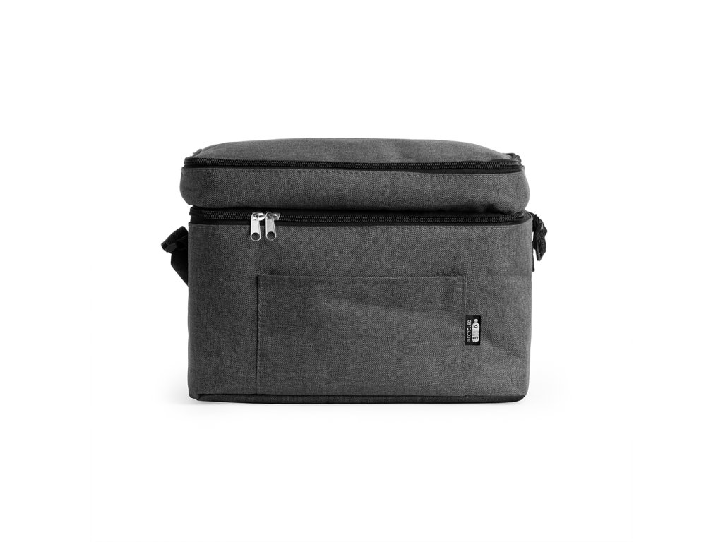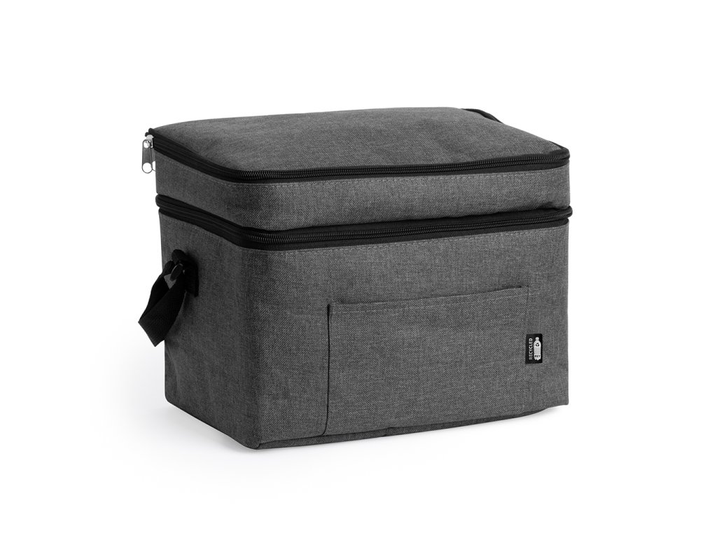Chladicí taška XL z polyesteru RPET ve vřesovém provedení. Dvojitá přihrádka a přední kapsa. Izotermická podšívka. Součástí je nastavitelný popruh pro přenášení.