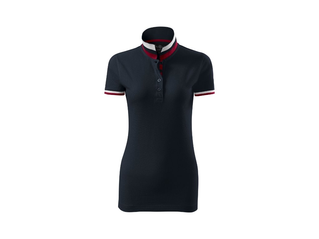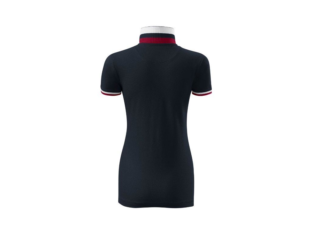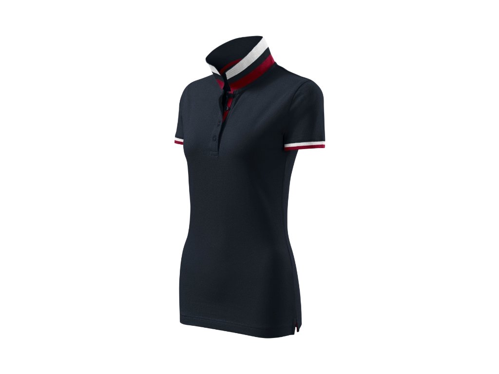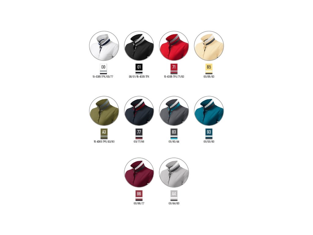 spodní část límečku a lemy rukávů s kontrastními pruhy