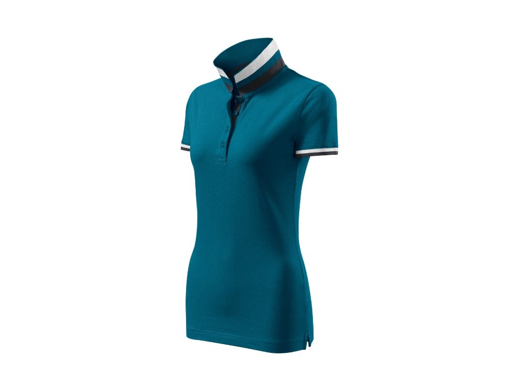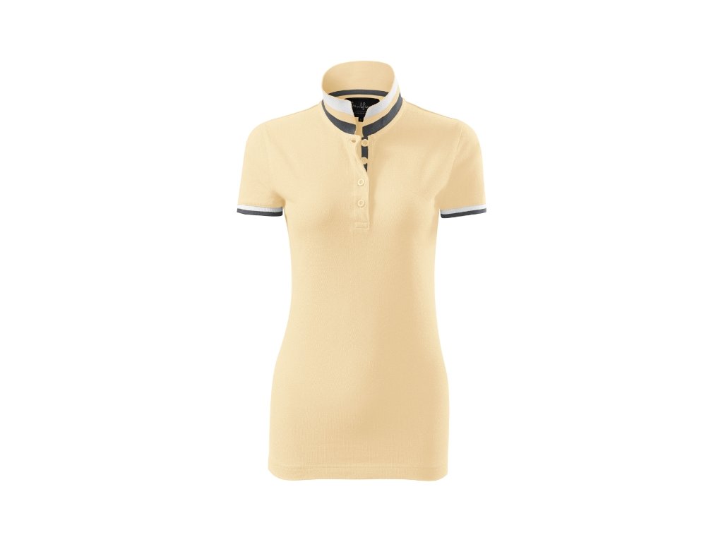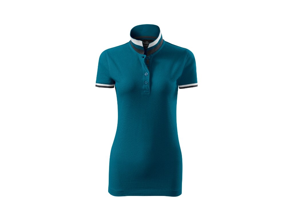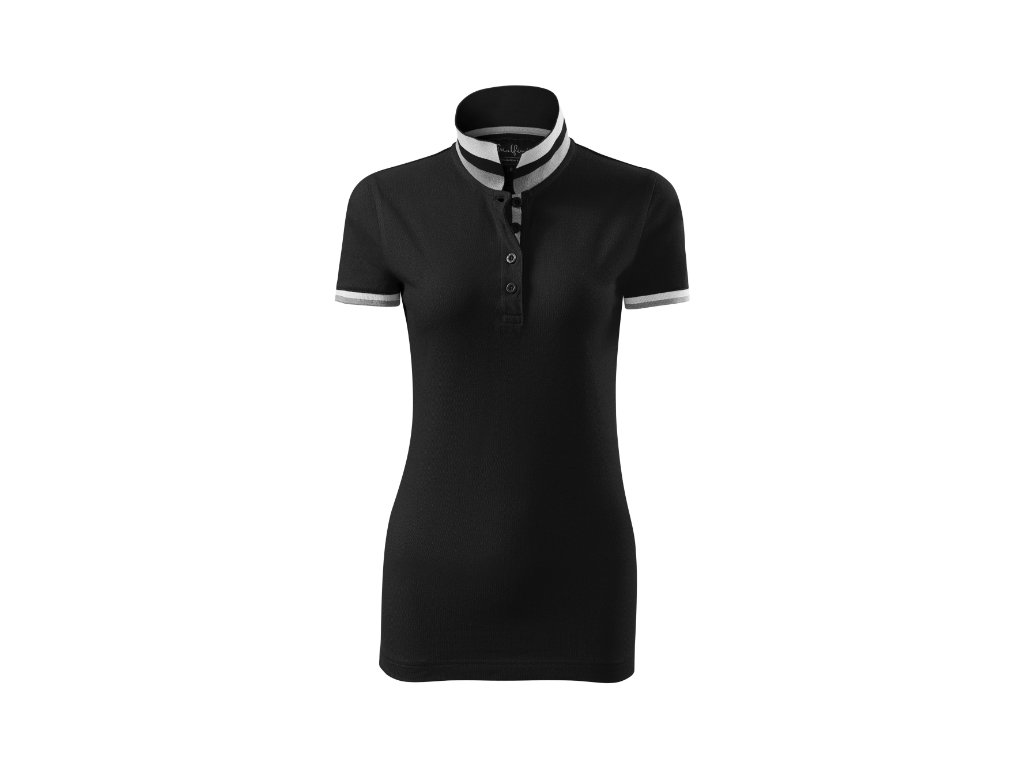 spodní část límečku a lemy rukávů s kontrastními pruhy
