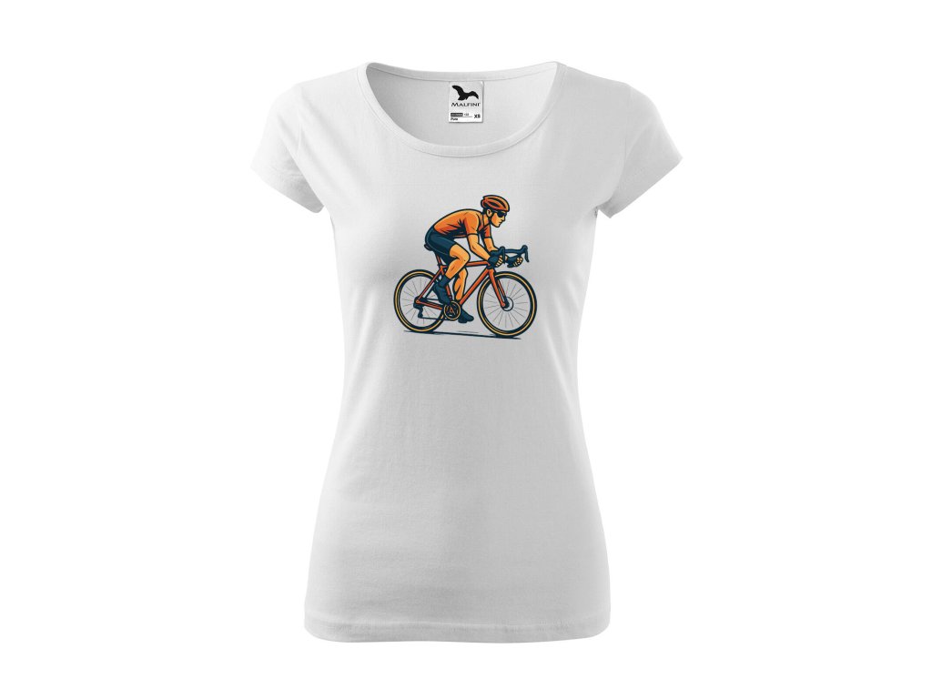 Stylové dámské triko s motivem cyklisty – perfektní pro všechny milovnice cyklistiky a aktivního životního stylu. Pohodlný materiál a originální design zaručují maximální komfort.