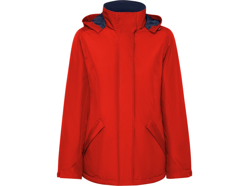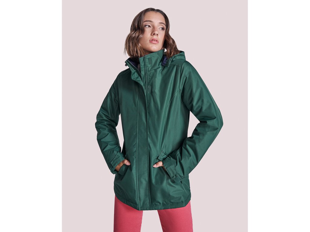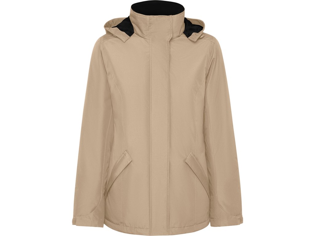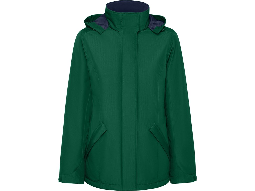 Dámská nepromokavá parka s vycpávkami s úzkým střihem. Vysoký límec se skládací kapucí a zapínáním na suchý zip. Odpovídající centrální zip s klopou. Boční kapsy se zipem a pevnou klopou. Vnitřní kapsa se zapínáním na suchý zip. Nastavitelné manžety s poutkem na suchý zip. Vnitřní prostor pro výztuhy na zádech a na levé straně hrudníku.