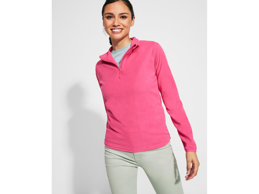 Dámská mikrofleecová mikina s krátkým zipem a manžetami z elastického materiálu.