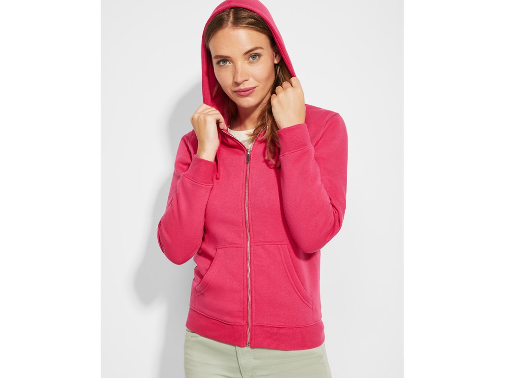 Dámská mikina s kapucí,celopropínacím kovovým zipem a klokaní kapsou.Mikiná má žebrované manžety a spodní lem. MATERIÁLOVÉ SLOŽENÍ MIKIN JE BUĎ 65% POLYESTER+35% BAVLNA NEBO 50% POLYESTER+50%BAVLNA.