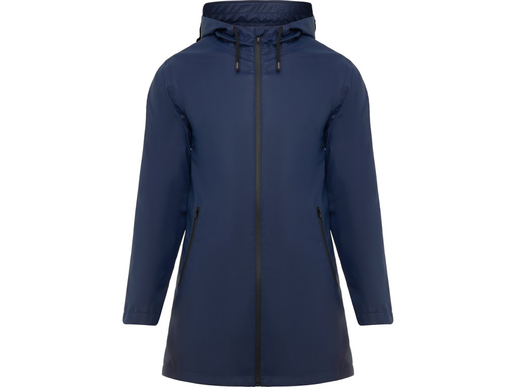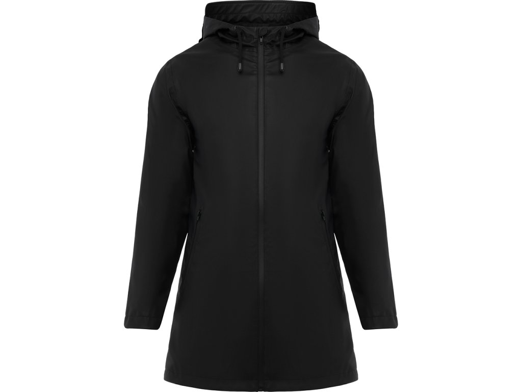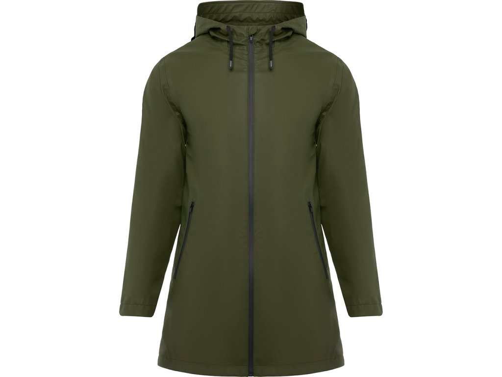 Nepromokavá bunda s kontrastními detaily v černé bervě a rozparkem na zadním lemu. Bunda má kapuci s kšiltem a dvě boční kapsy na zip. Zadní díl bundy prodloužen.