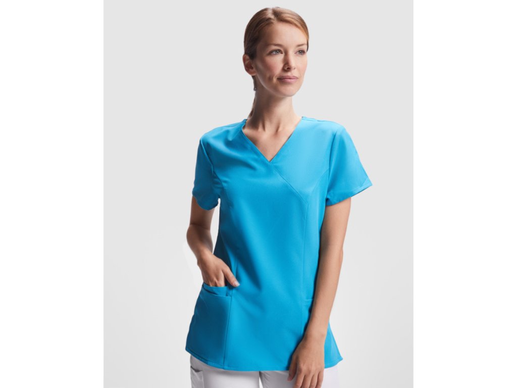 Dámská pracovní blůza s krátkým rukávem,a překříženým výstřihem. Blůza má dvě kapsy.