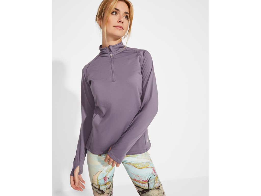 Funkční dámská mikina s dlouhým raglánovým rukávem. Mikina má podšívku z plyšového úpletu a zesílené kryté švy v límci. Sladěný obrácený poloviční zip. Otvor na palec v manžetách a overlockové švy na rukávech a bočních dílech. Vysoce viditelné logo Roly na levém bočním dílu.
