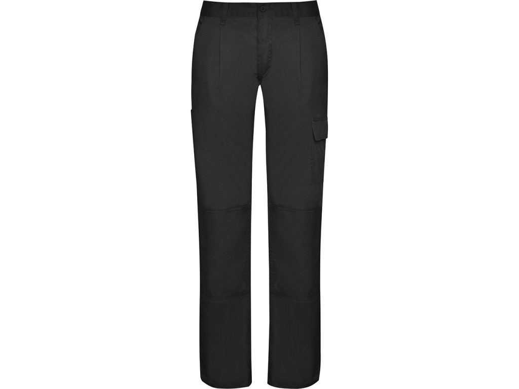 Dámské pracovní kalhoty se dvěma předními kapsami. Upravitelný obvod pasu. Zesílená dvojitá zadní část. Dvě zadní funkční kapsy, jedna postranní. Pas s poutky na opasek.