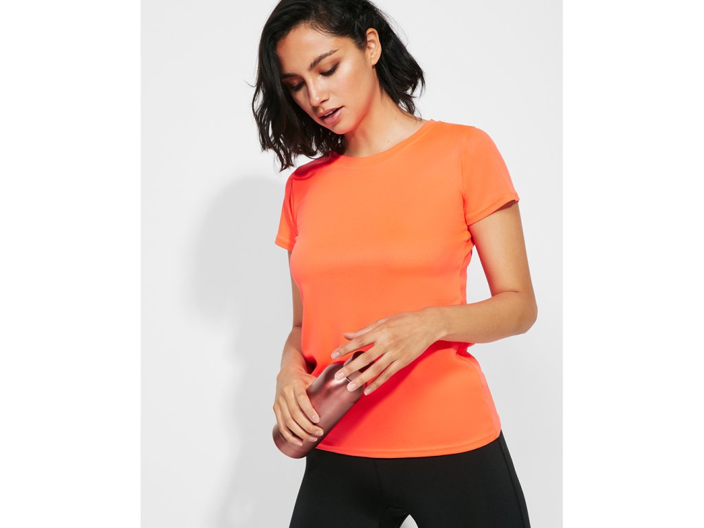 Sportovní dámské triko příléhavého střihu s kulatým průkrčníkem. Prodyšný materiál jednoduché údržby vhodný pro sublimaci.