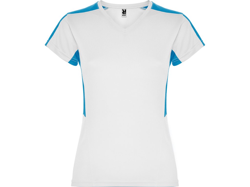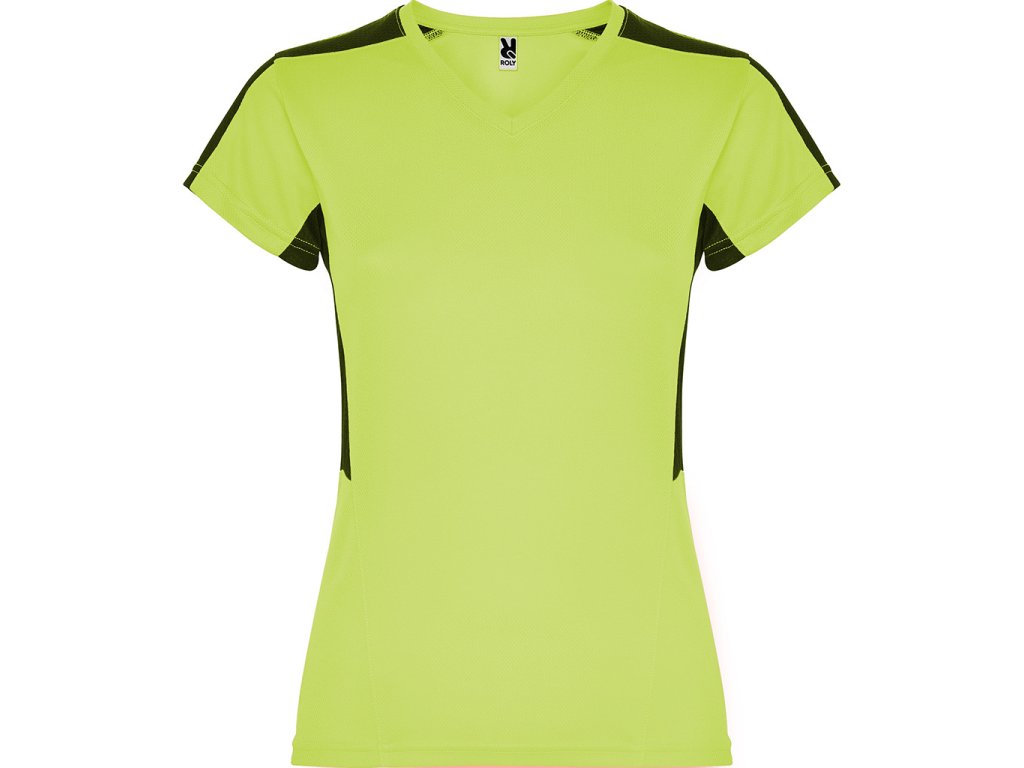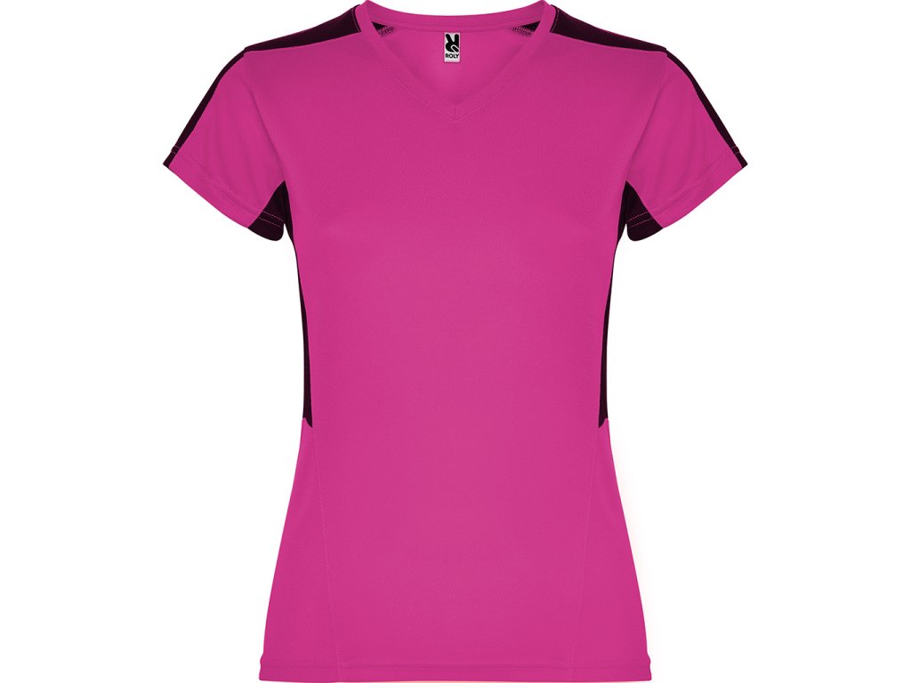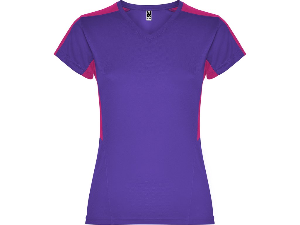 Dámské funkční triko s krátkým rukávem a výstřihem do V. Kombinace dvou polyesterových tkanin. Hlavní materiál polyester honeycomb a polyester 3D mřížky na ramenou a bočních vsadkách. Materiál dobře absorbuje vlhkost.