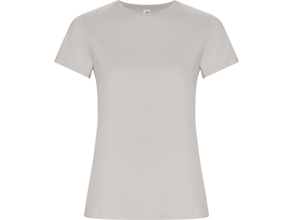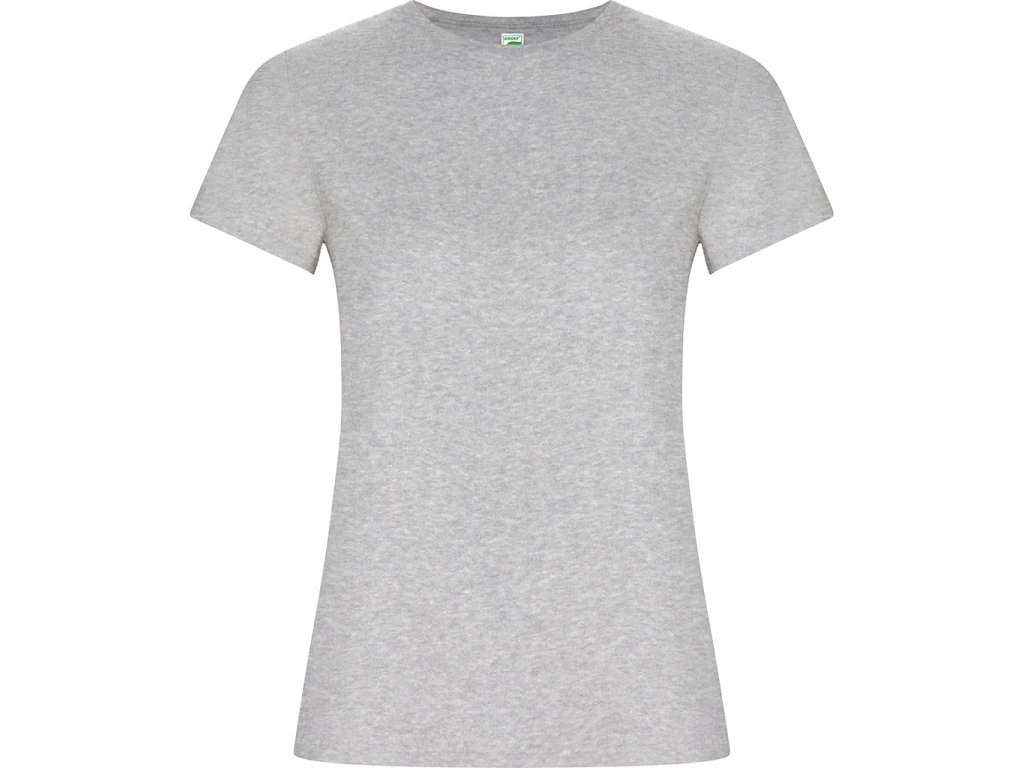 Dámské tričko s krátkým rukávem z organické bavlny, vypasovaný střih. Kulatý průkrčník s žebrováním 1x1. Dekorativní prošití na spodním lemu a rukávech. Boční švy. Barva 58 (melange) - složení 85% bavlna/15% polyester