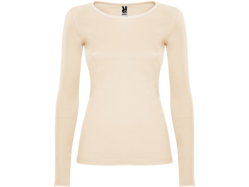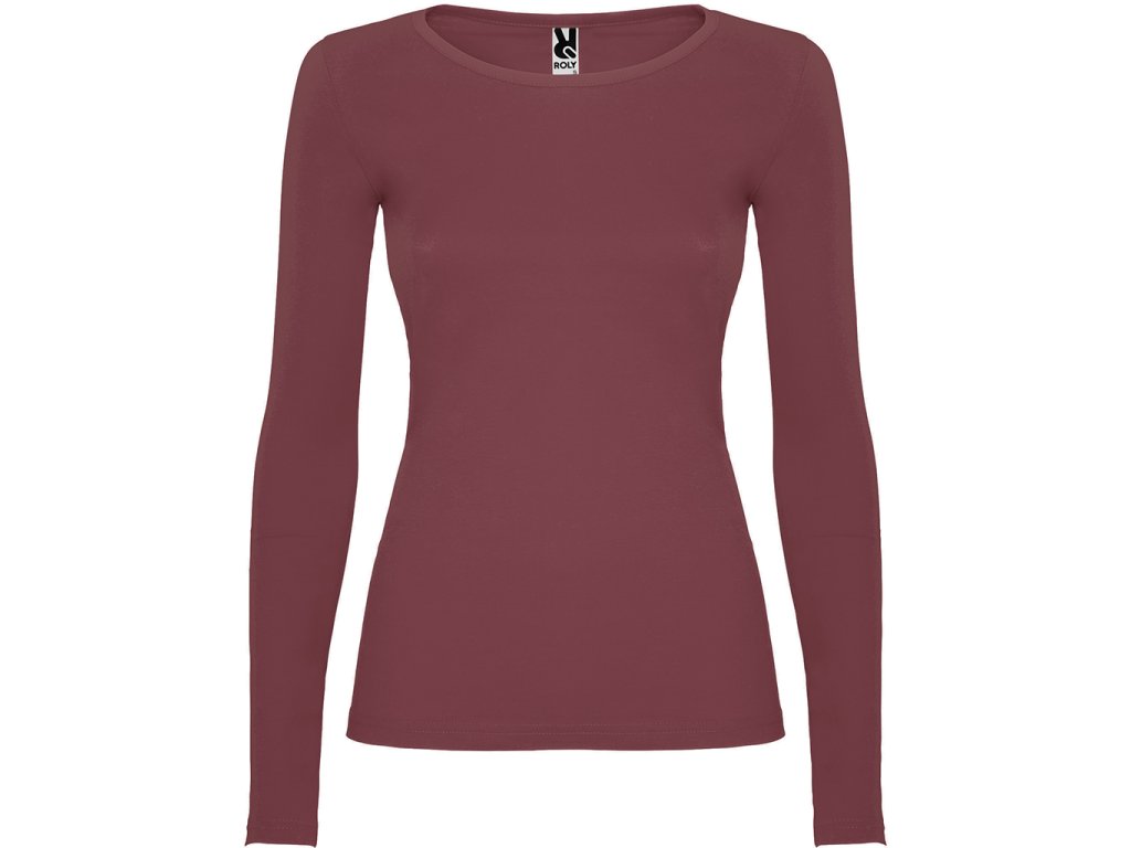 Polopřiléhavé dámské triko s dlouhým rukávem a kulatým výstřihem zakončeným jemným lemem. Rukávy bez manžet, boční švy.