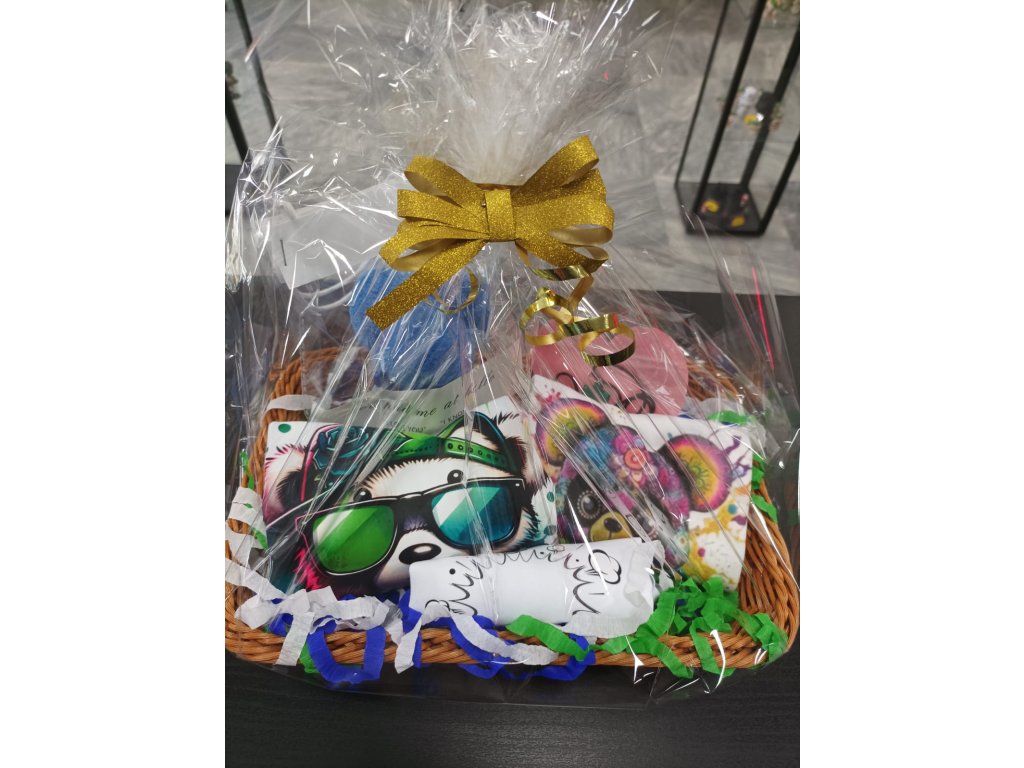 Koš je profesionálně zabalen v celofánu, ozdoben výplní a převázán elegantní zlatou mašlí. Darujte něco, co je praktické a zároveň má styl!
