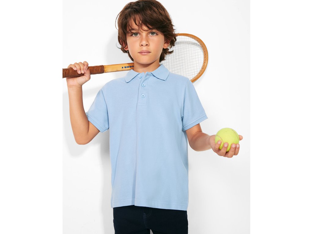 Pánská/dětská polokošile s krátkým rukávem se zapínáním na tři knoflíky. Límec a olemování rukávů v žebrovaném úpletu. Zpevněné skryté švy na průkrčníku, boční rozparky. Boční švy. Součástí je látka na případné našití kapsy. Barva 58 (melange) - složení 85% bavlna/15% polyester