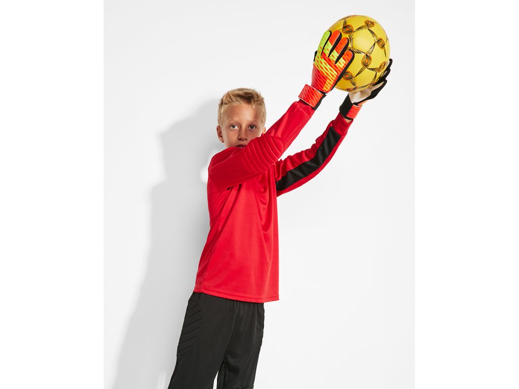 Brankářské tričko s dlouhým rukávem a prošívanými loketními nášivkami. Kontrastní panely na vnitřní straně rukávů. Kontrastní detail na zadní straně výstřihu a manžet. Prodyšný, lehce schnoucí materiál.