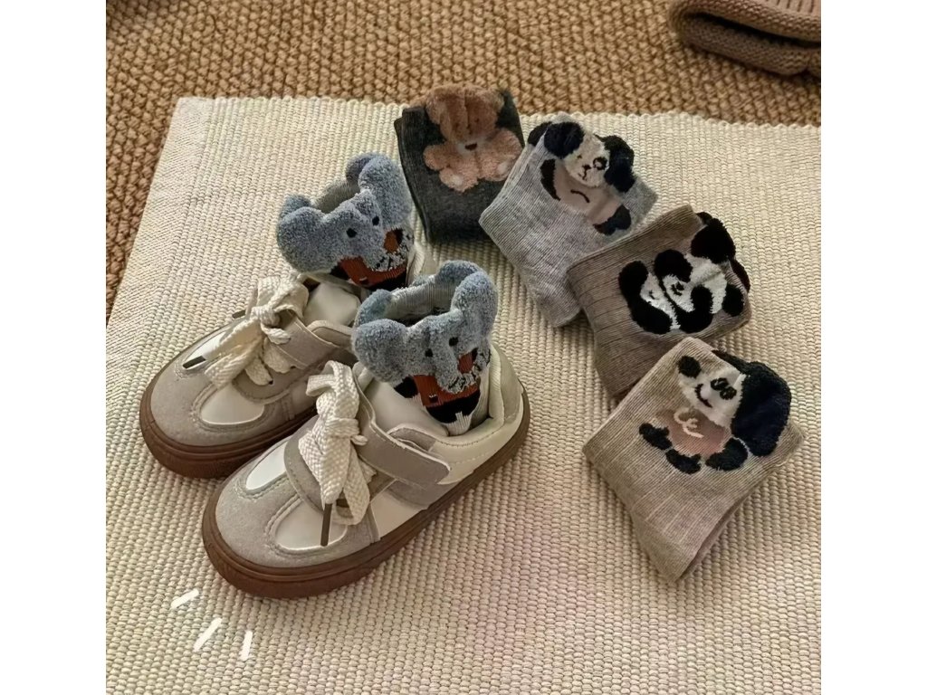 Co je ale nejlepší? Každý pár zdobí roztomilý obličej zvířátka – pandy, medvídka nebo pejska – a je doplněn o vystouplá 3D plyšová ouška, která vykukují z boty ven! Tento hravý detail dodává ponožkám jedinečný charakter a zaručeně se stane oblíbeným kouskem v šatníku vašeho dítěte.