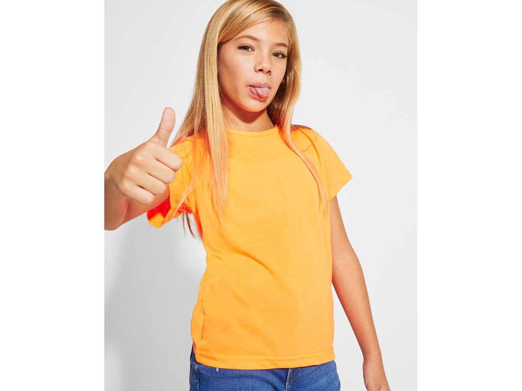 Triko s krátkým rukávem ve fluorescenčních barvách. Kulatý průkrčník. Zpevněné švy na průkrčníku a na ramenou. Vyrobeno z polyesteru, na omak působí jako bavlna. Lze zakoupit i dětských velikostech.