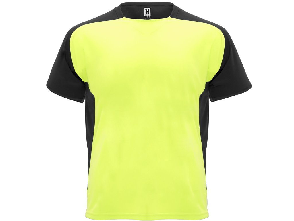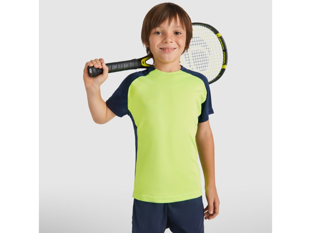 Funkční tričko s krátkým raglánovým rukávem. Kulatý výstřih se zakrytím švů tón v tónu. Kontrastní rukávy a postranní panely.