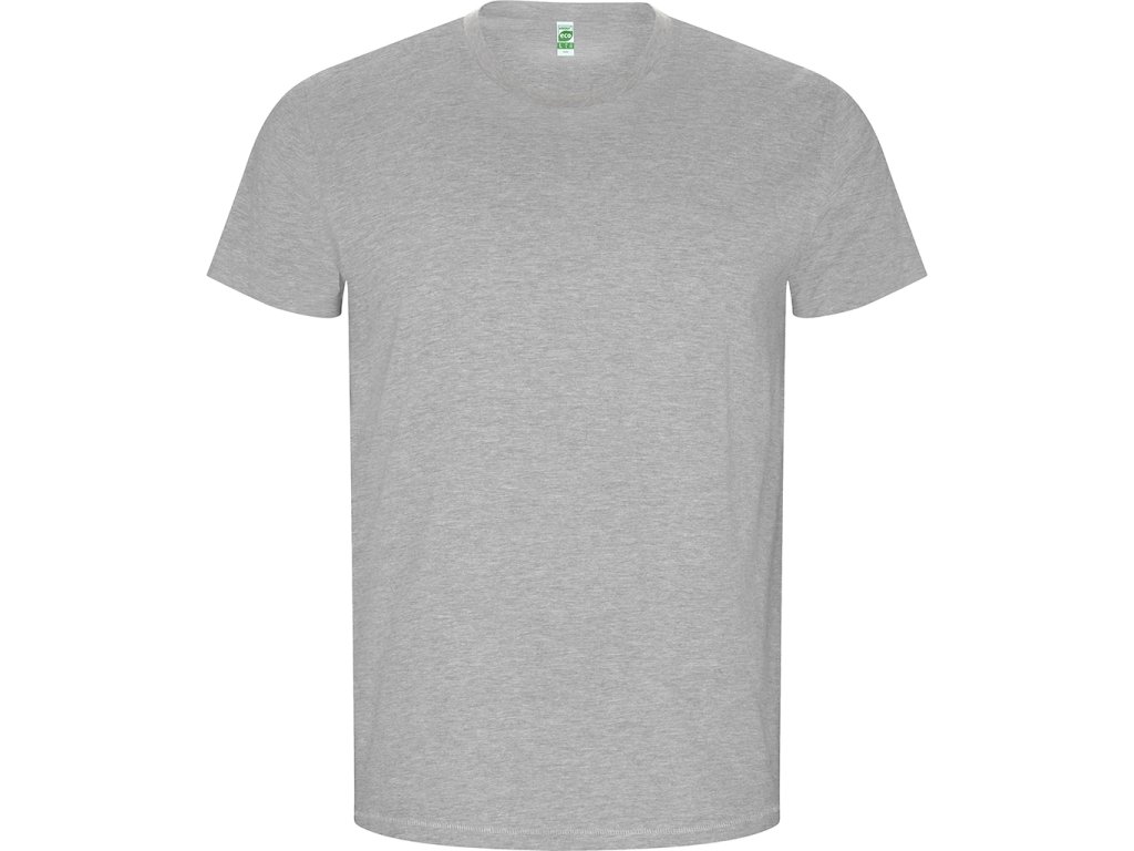Pánské tričko s krátkým rukávem z organické bavlny, bez bočních švů. Kulatý průkrčník s žebrováním 1x1. Dekorativní prošití na spodním lemu a rukávech. Barva 58 (melange) - složení 85% bavlna/15% polyester