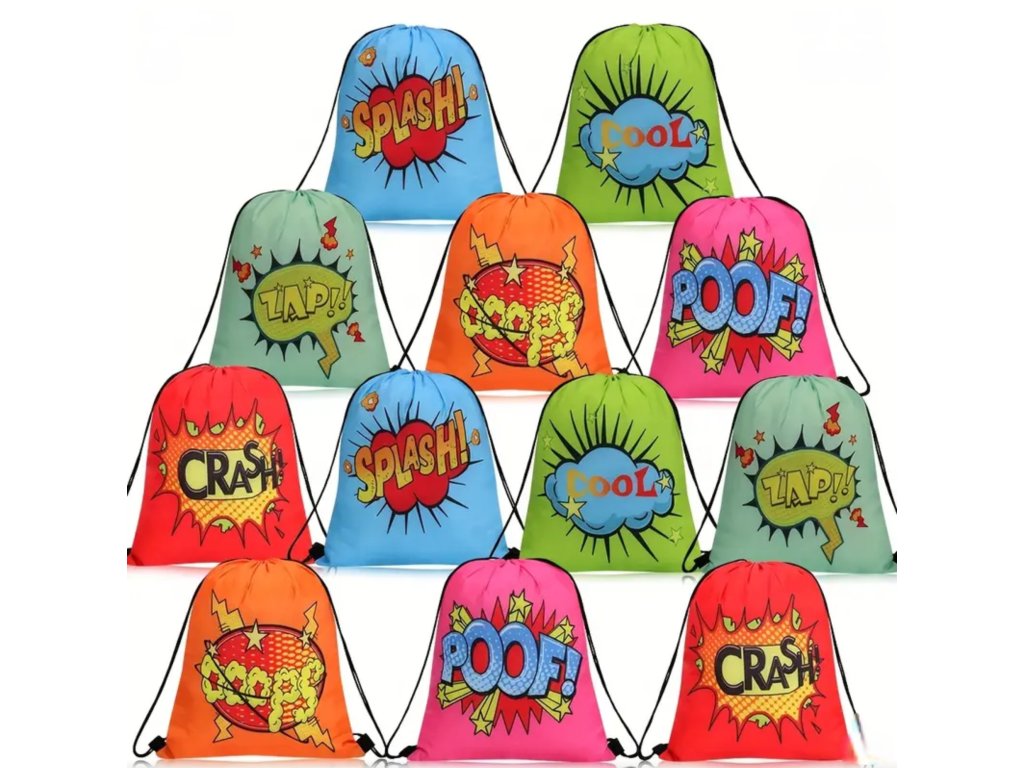 Popis: Každý malý hrdina potřebuje ten správný batůžek na svá dobrodružství! Naše stahovací vaky v komiksovém stylu jsou plné barev a energie, přesně jako vaše děti. Jsou perfektní volbou na sport, do školy, na plavání nebo jako originální a praktická taška na dárky z narozeninové oslavy.
