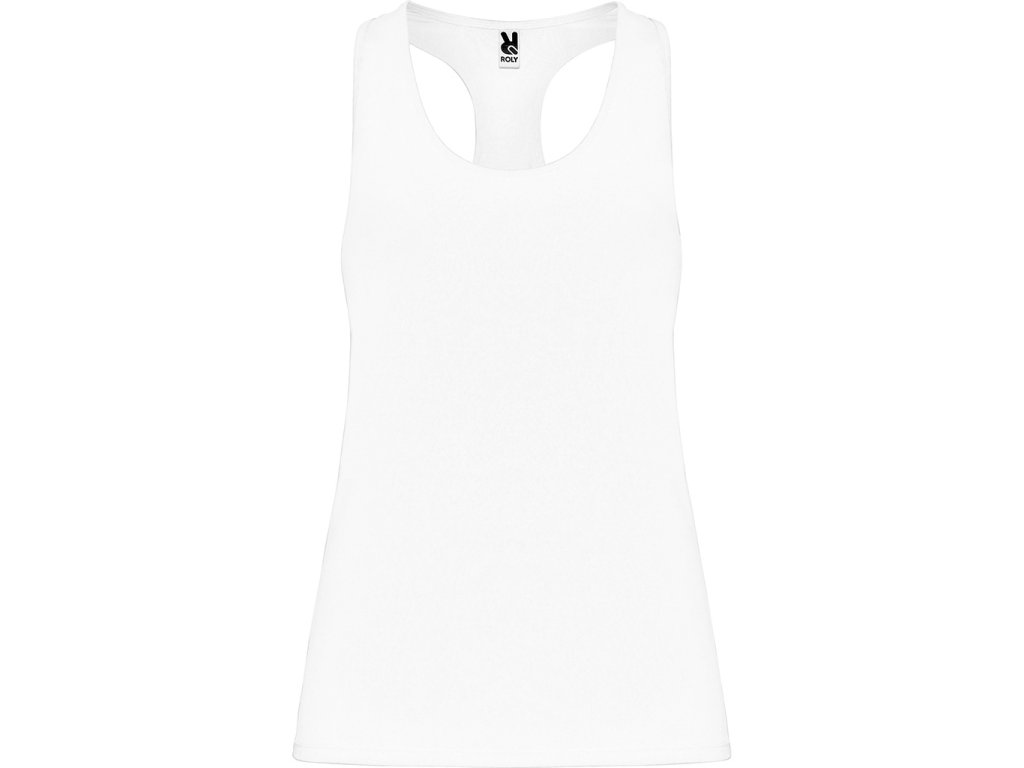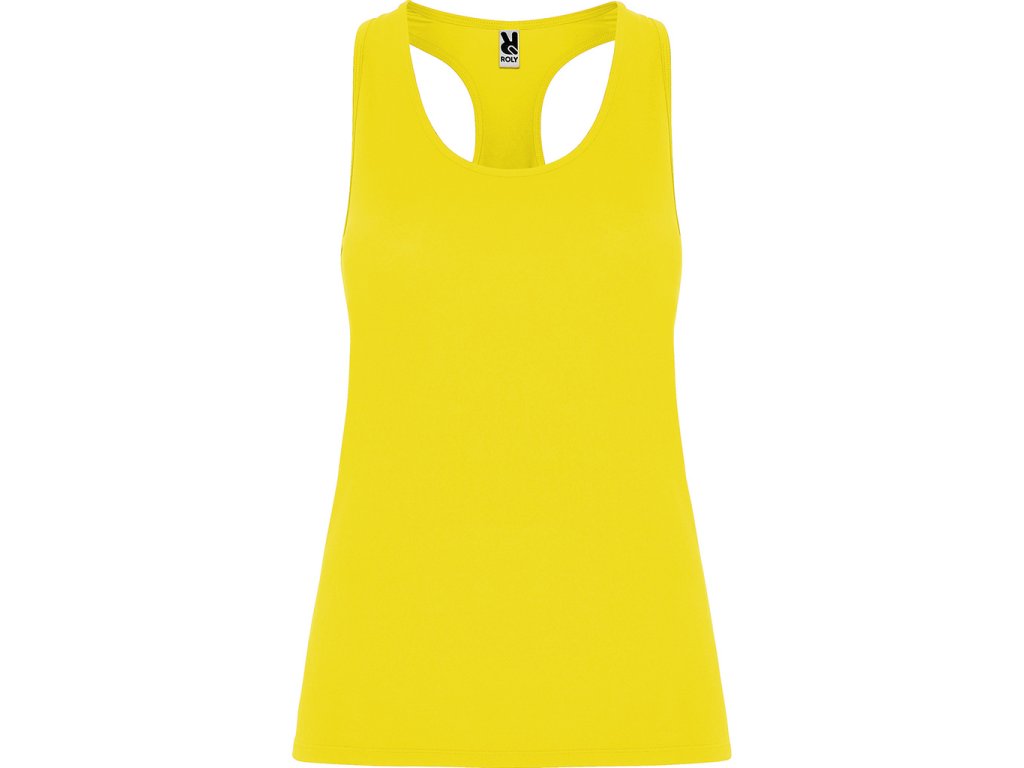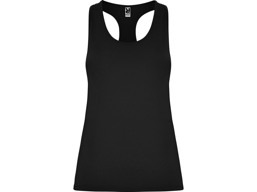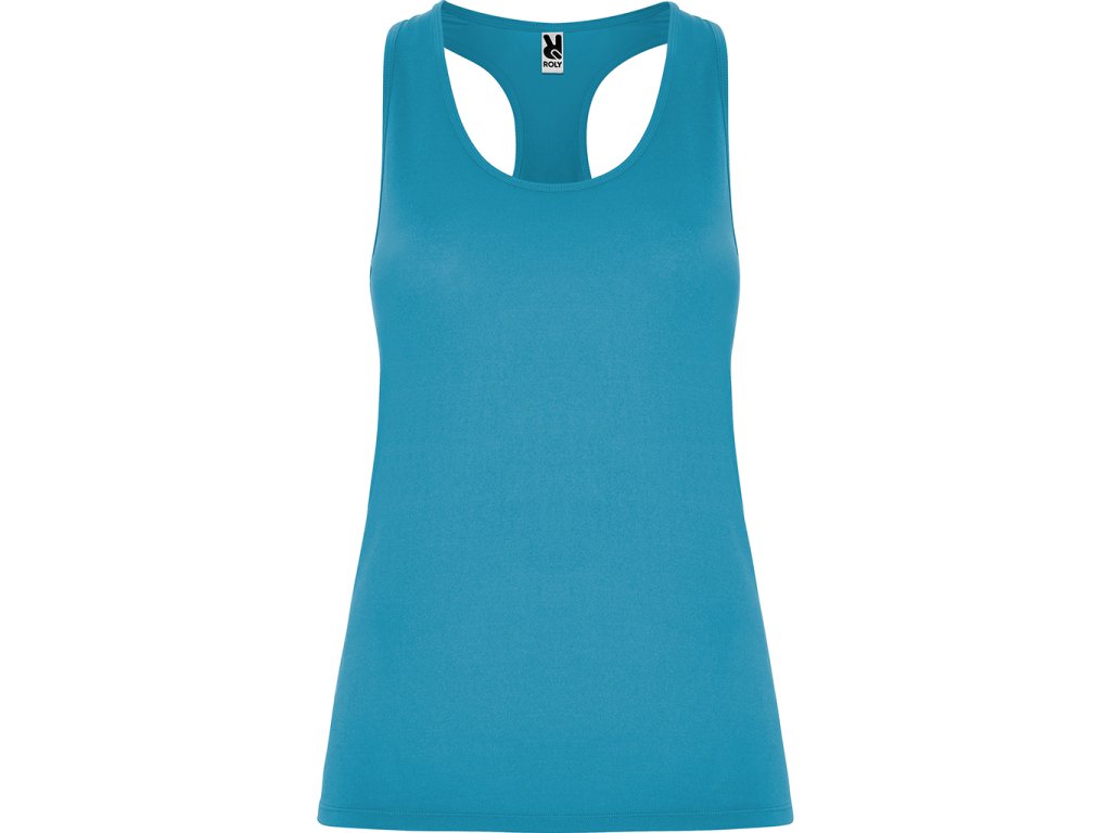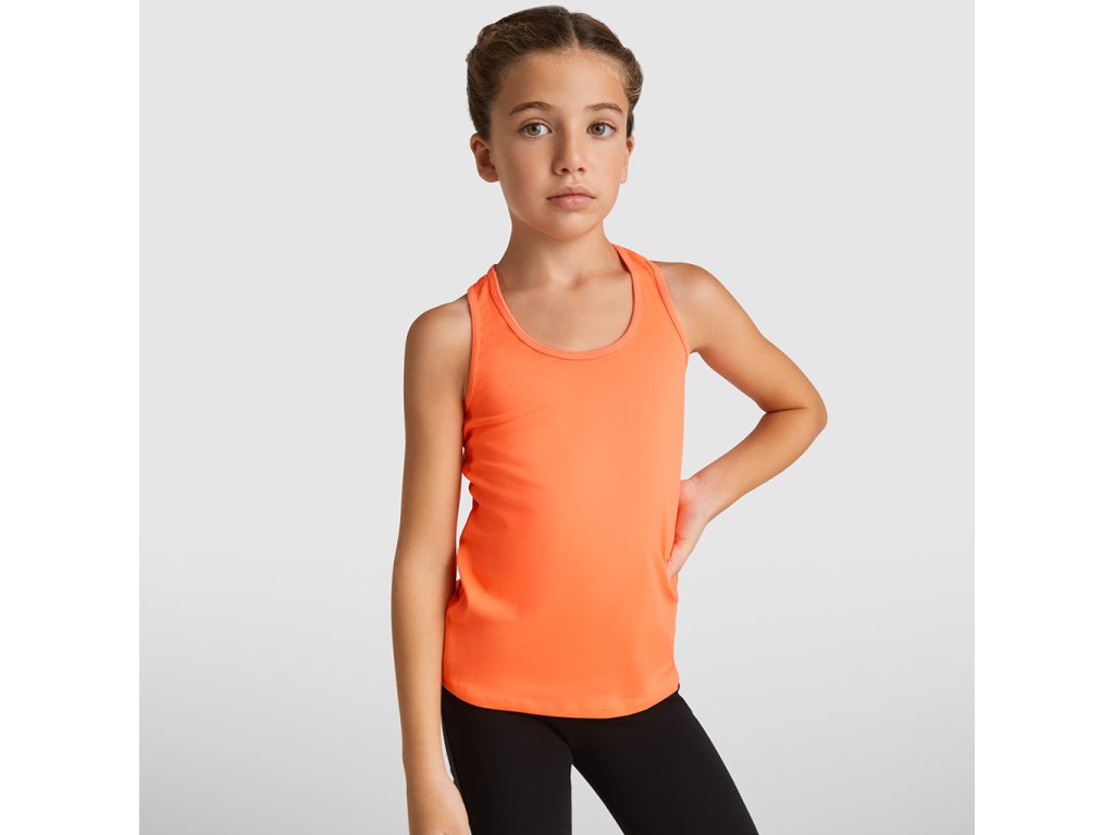 Sportovní dámské/dívčí tílko s kulatým výstřihem a se zadním vykrojením v plaveckém stylu. Vyrobeno z polyesteru, na omak materiál působí jako bavlna. Přiléhavý střih.